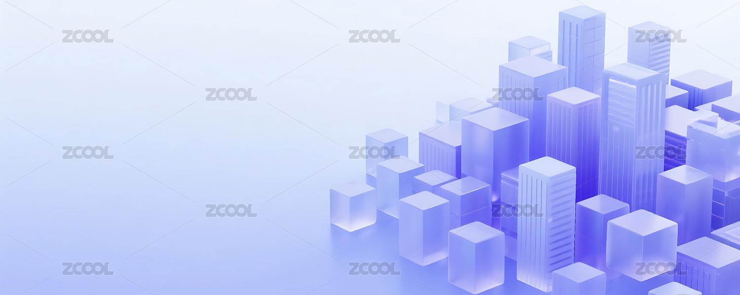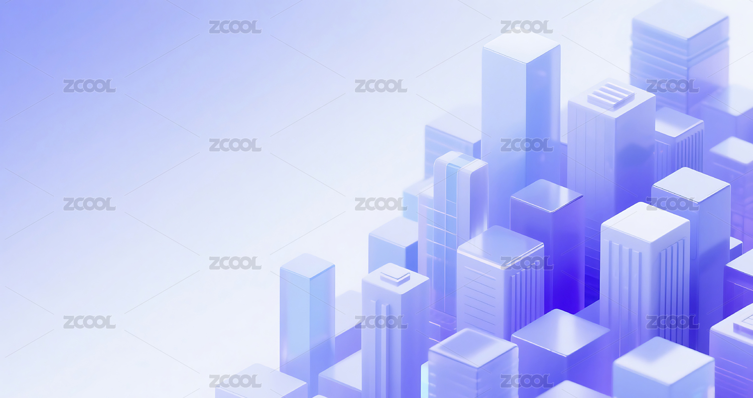 紫色3D立体玻璃质感城市建筑背景