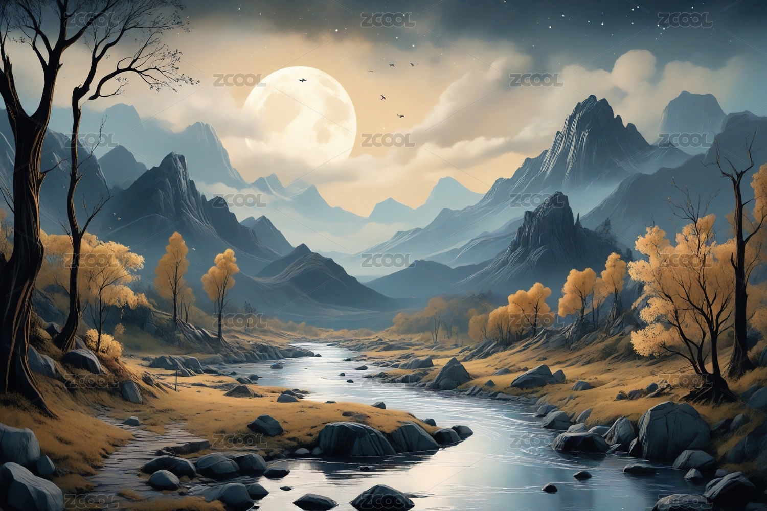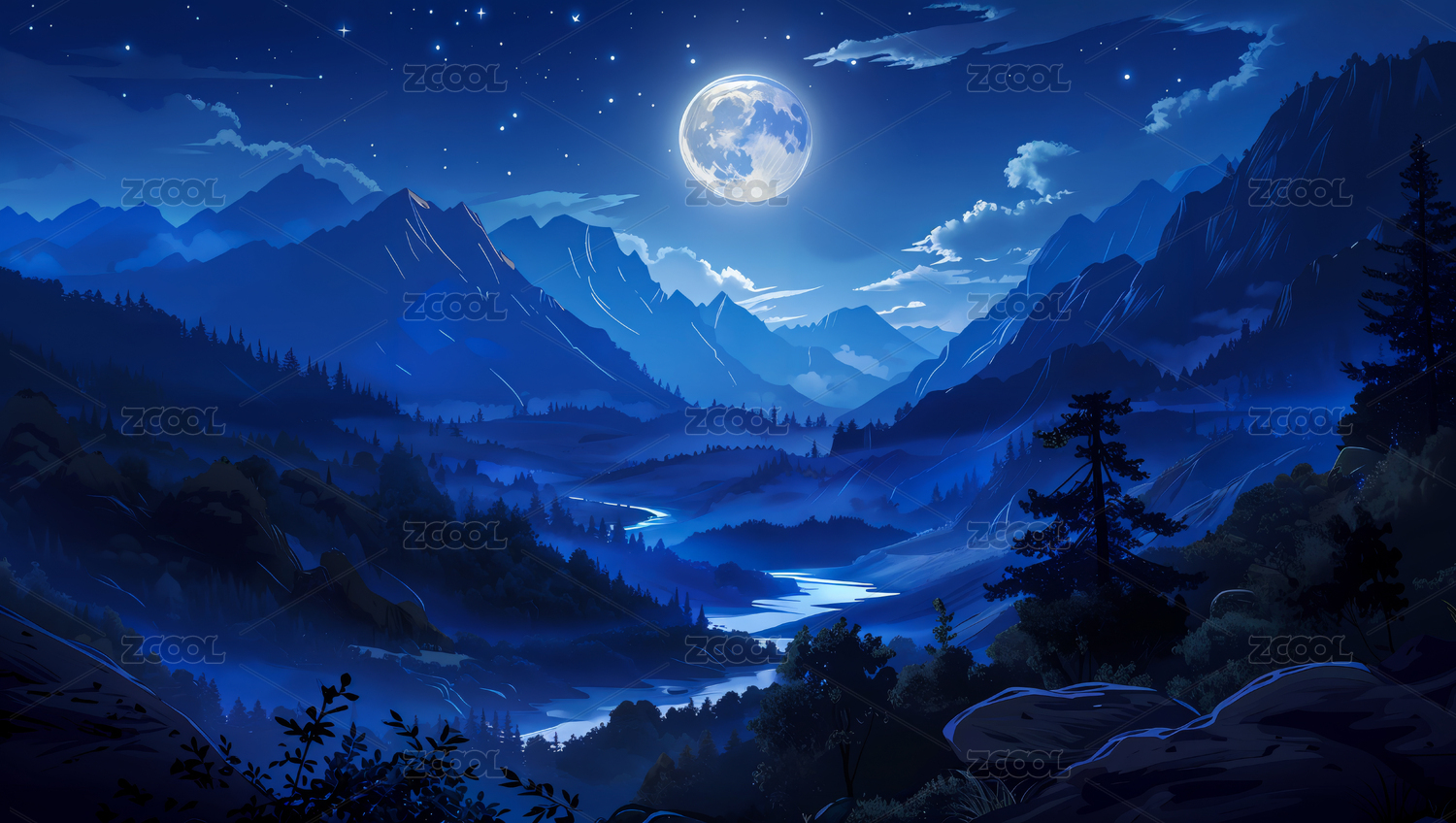 秋天,夜晚,森林,秋叶,小河,月光,神秘,宁静,树梢,丛林