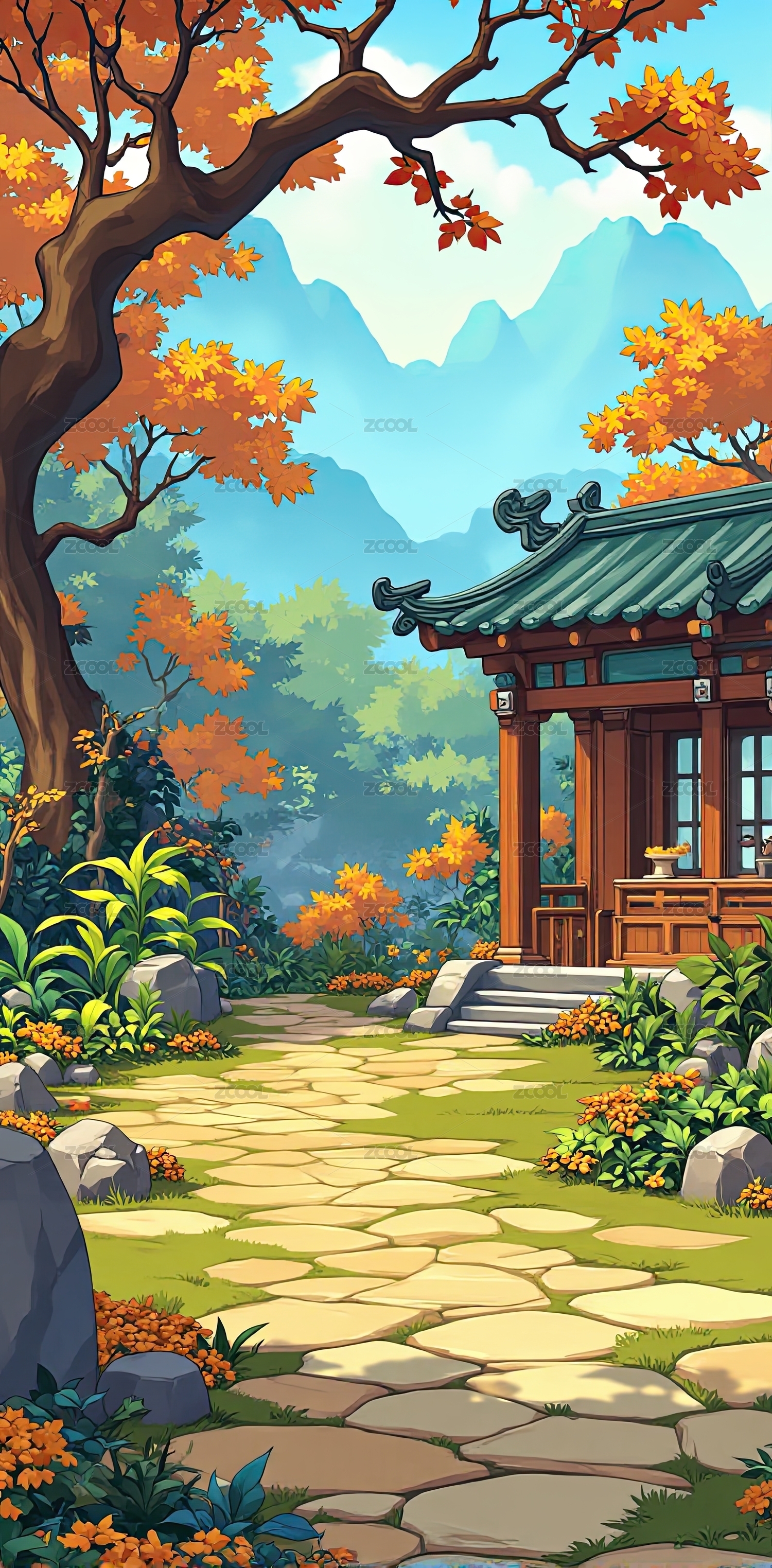 中式,国风,茶馆,茶楼,亭台楼阁,背景,木质,桌子,椅子,窗户