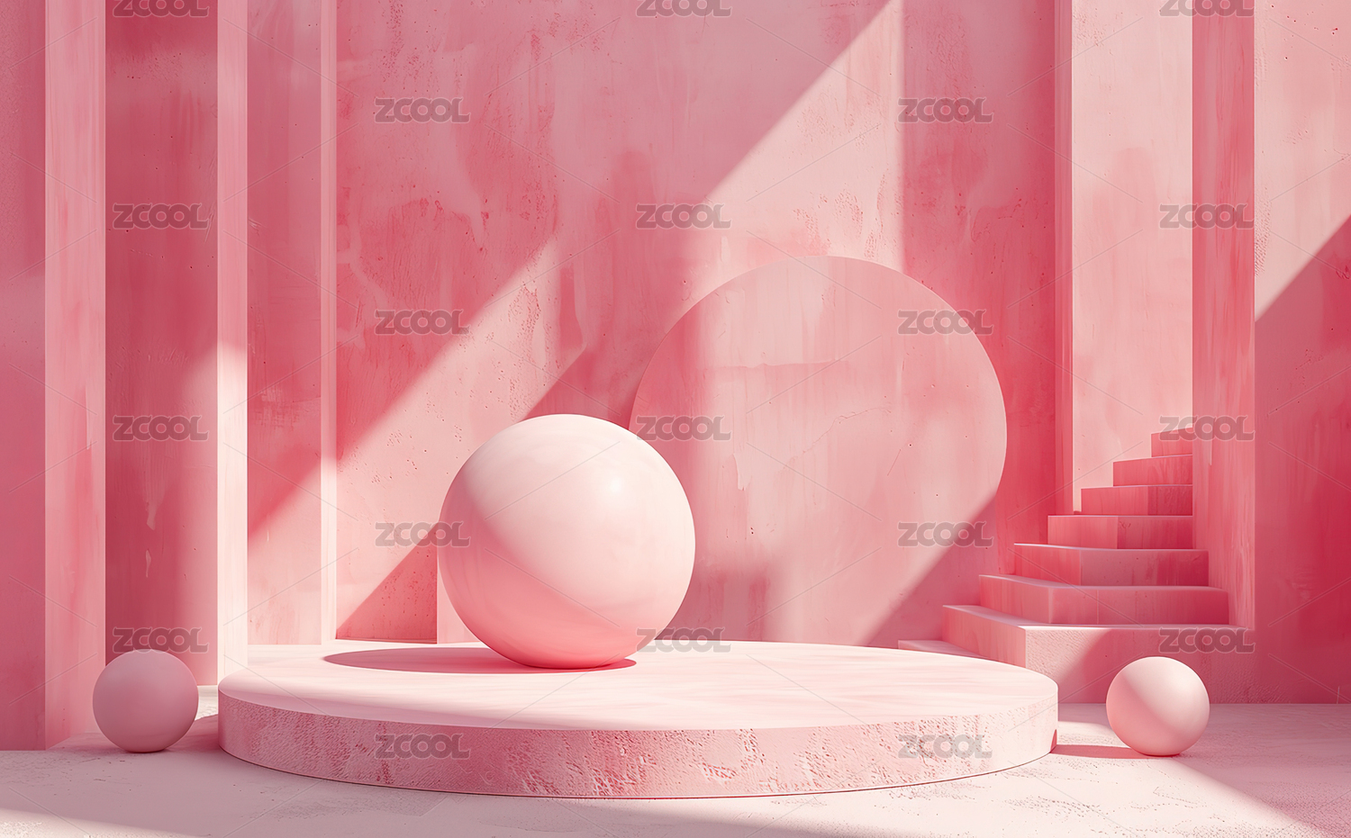 3D,展台,渲染,电商,空旷,简约,创意,粉色,小清新,可爱