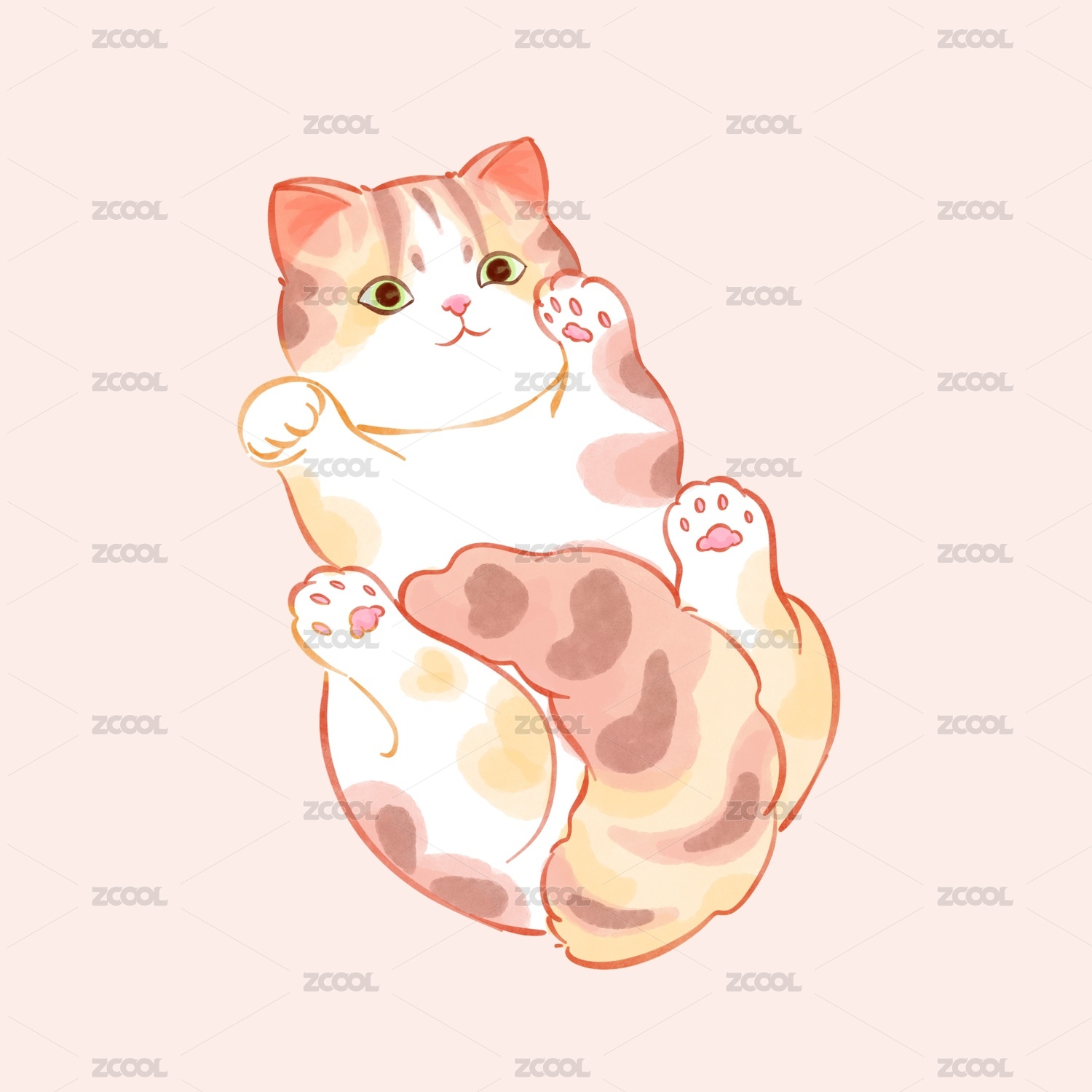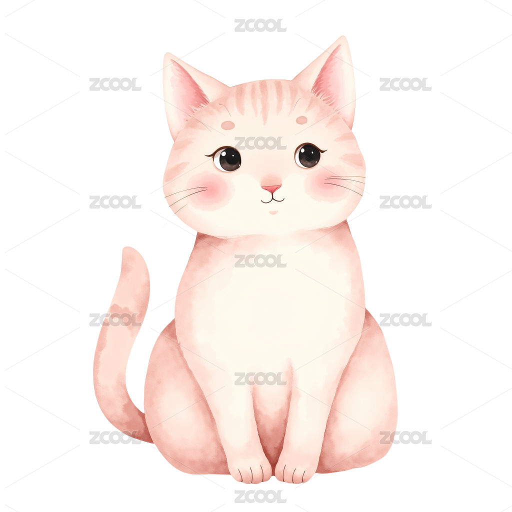可爱水彩猫咪插画