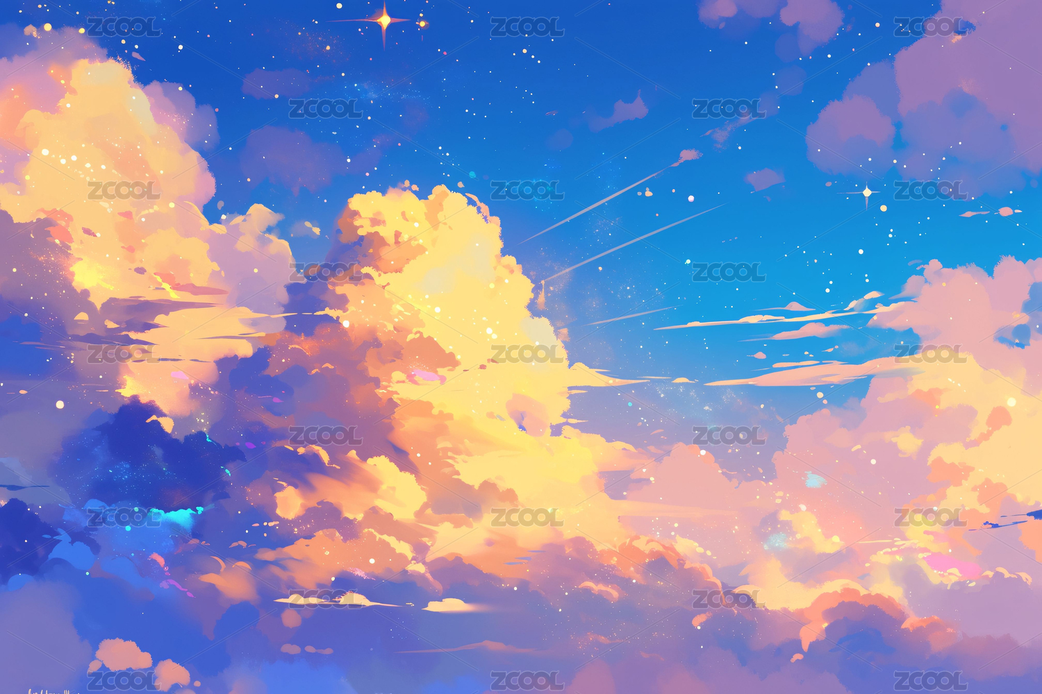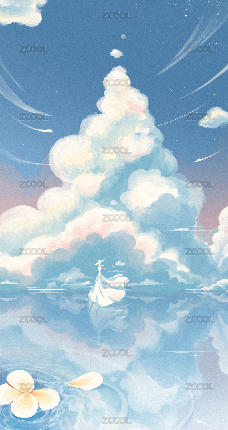 唯美天空风景手绘插画