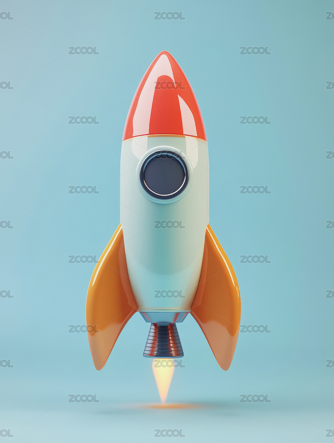 火箭,蓝色,3D,元素,物体,白色,背景,卡通