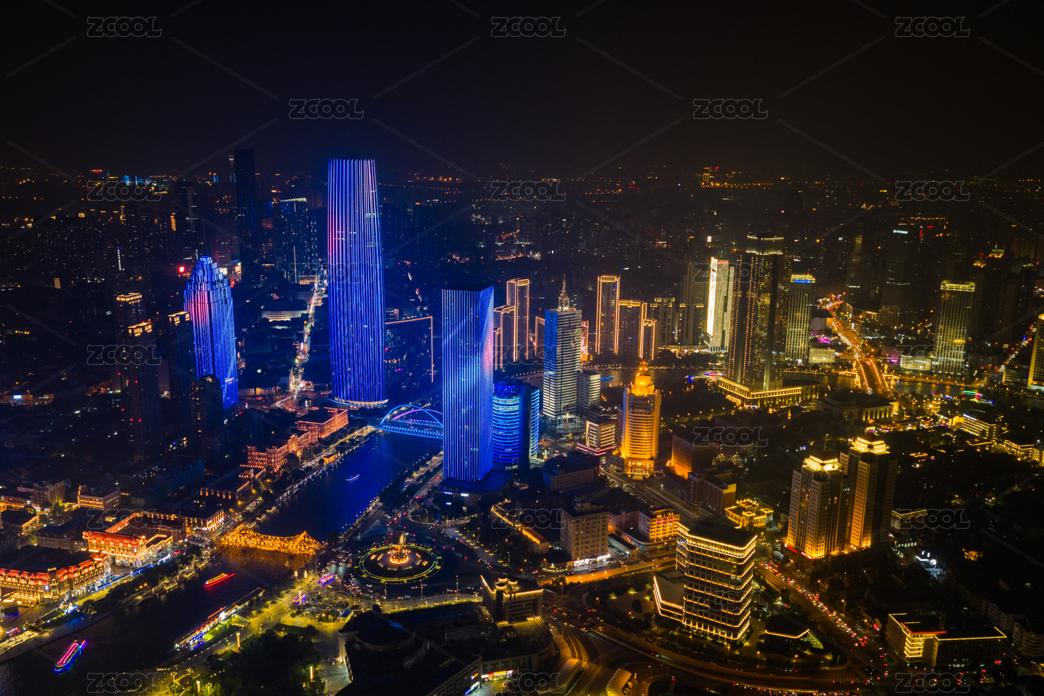 航拍中国广东省广州市珠江白鹅潭两岸夜景