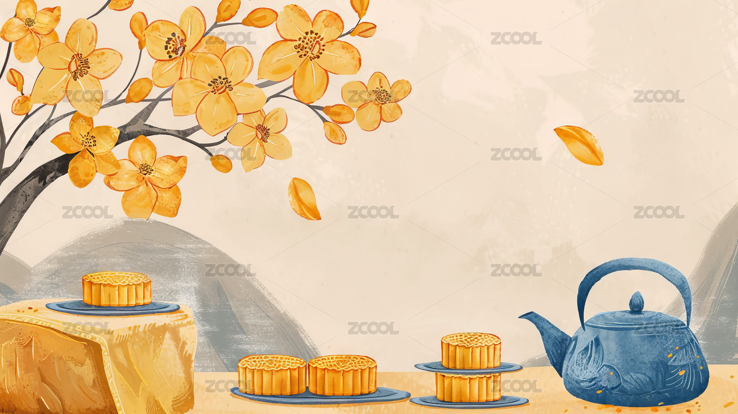 重阳节,菊花,红色,黄色,绿色,插画,绘画,水墨画,节日,旅游