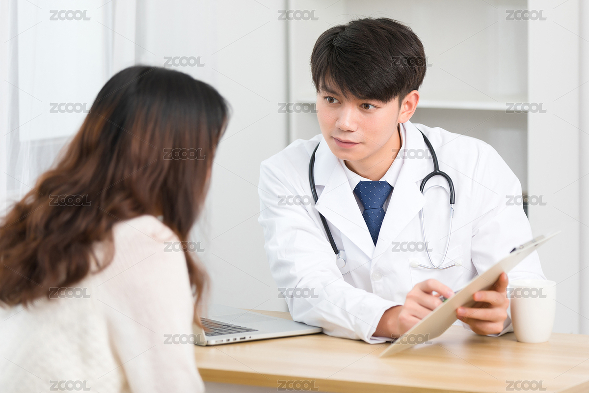 坐在办公室里的亚洲男医生正在询问患者的病情
