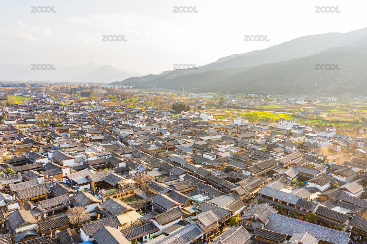 航拍云南丽江白沙古镇原生态纳西族村落古都