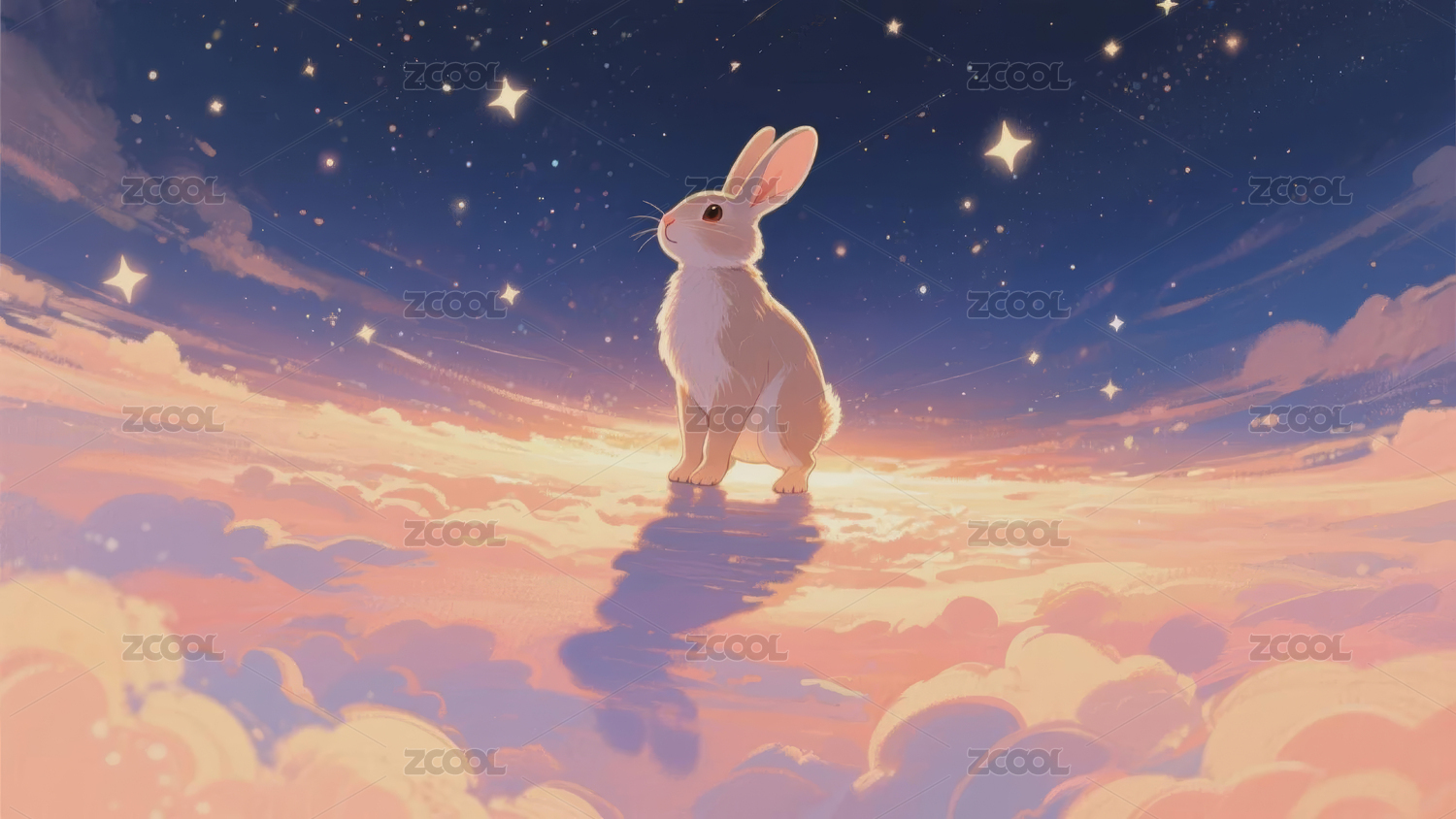 行走在浩瀚宇宙空间中的小白兔