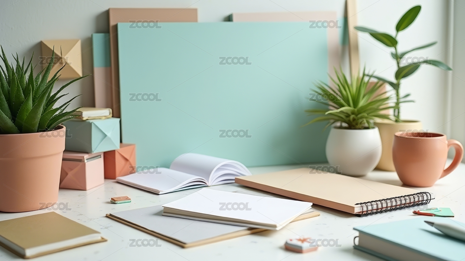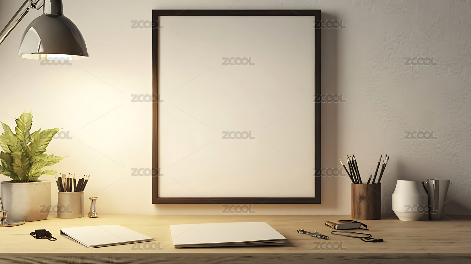 简约相框书桌台灯纯色背景商业广告海报壁纸