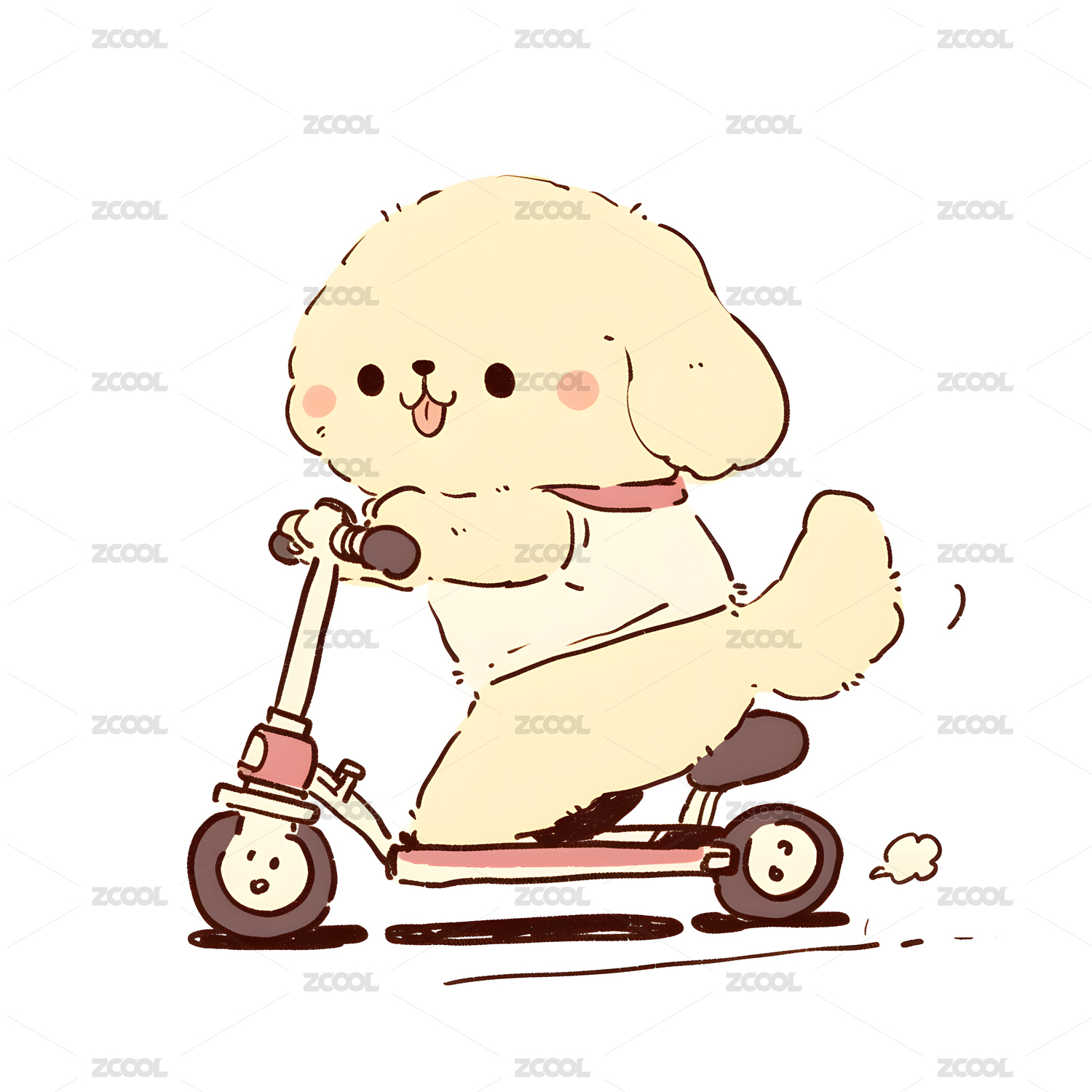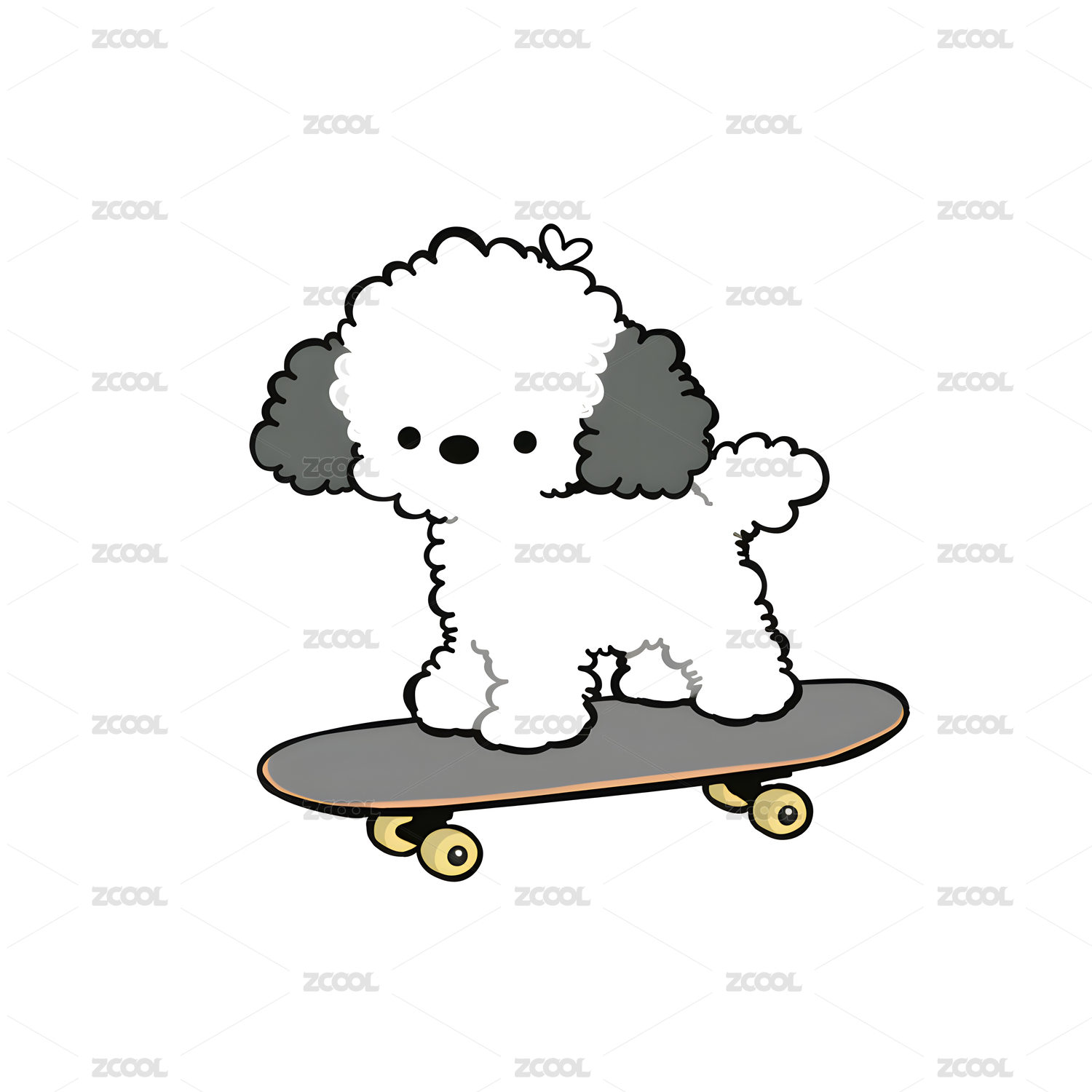 线条风格玩滑板的小狗