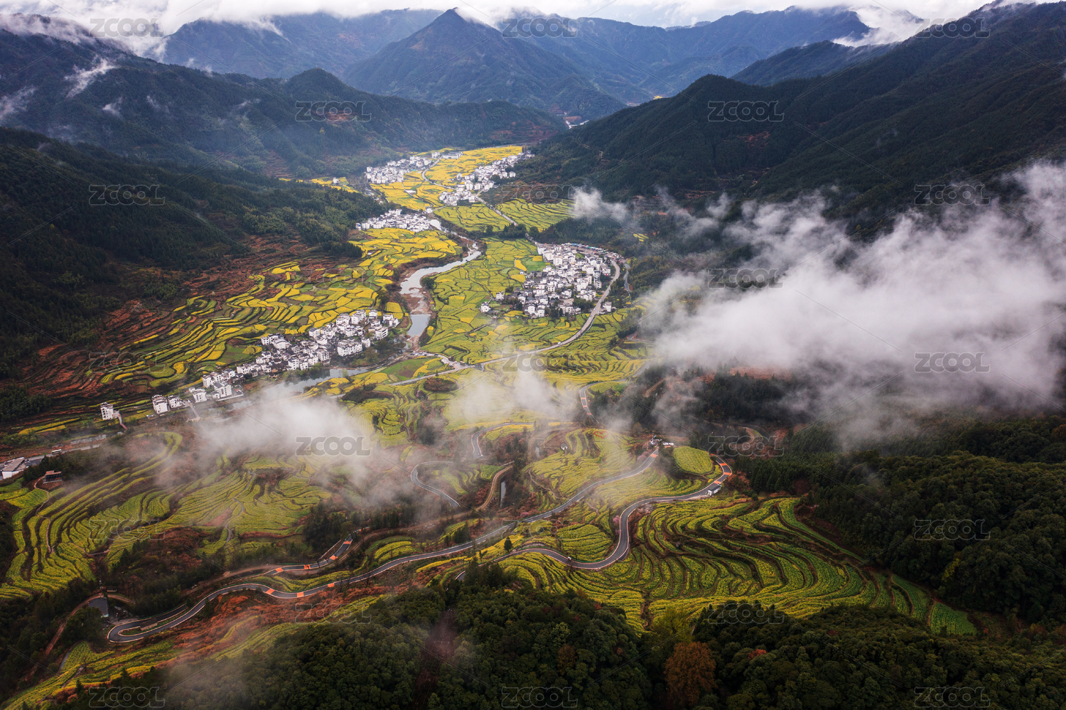 航拍中国最美乡村江西省婺源县江岭油菜花