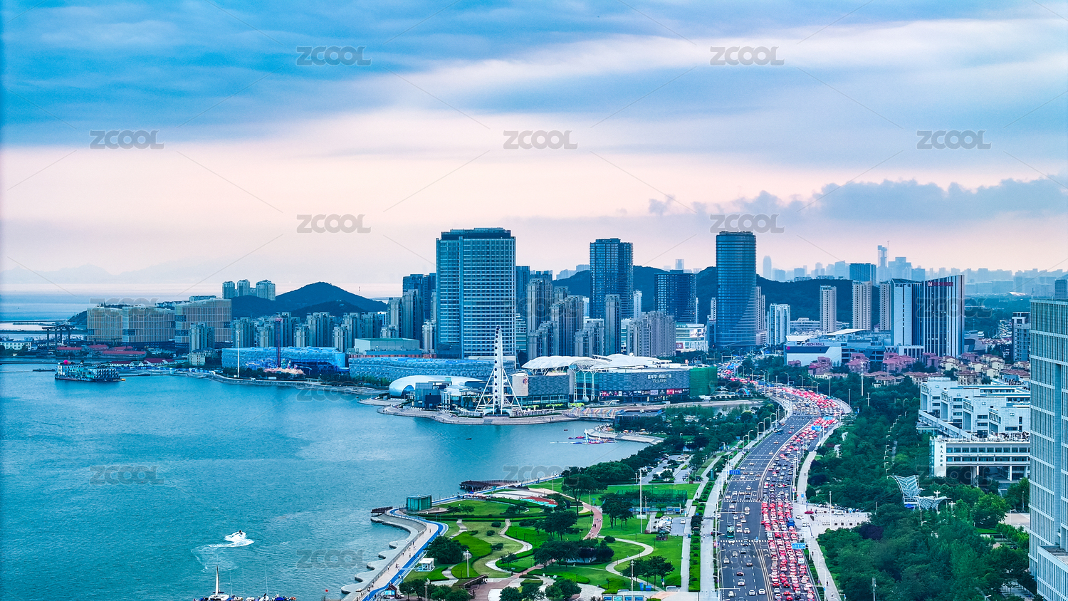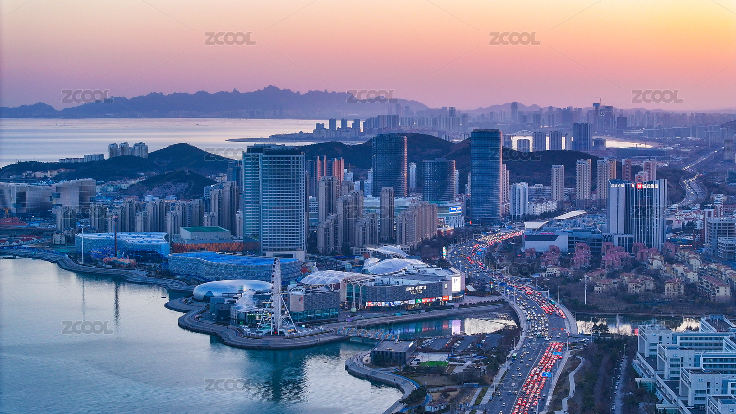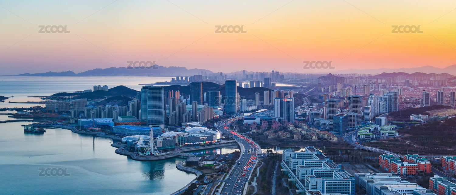 青岛市,黄岛区,西海岸新区,城市风光,建筑风光,全景,唐岛湾,城市天际线,海上嘉年华,海信