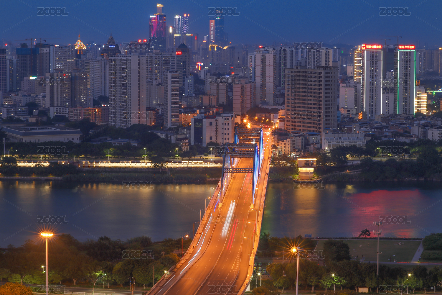 广西南宁凌铁大桥城市风光建筑夜景