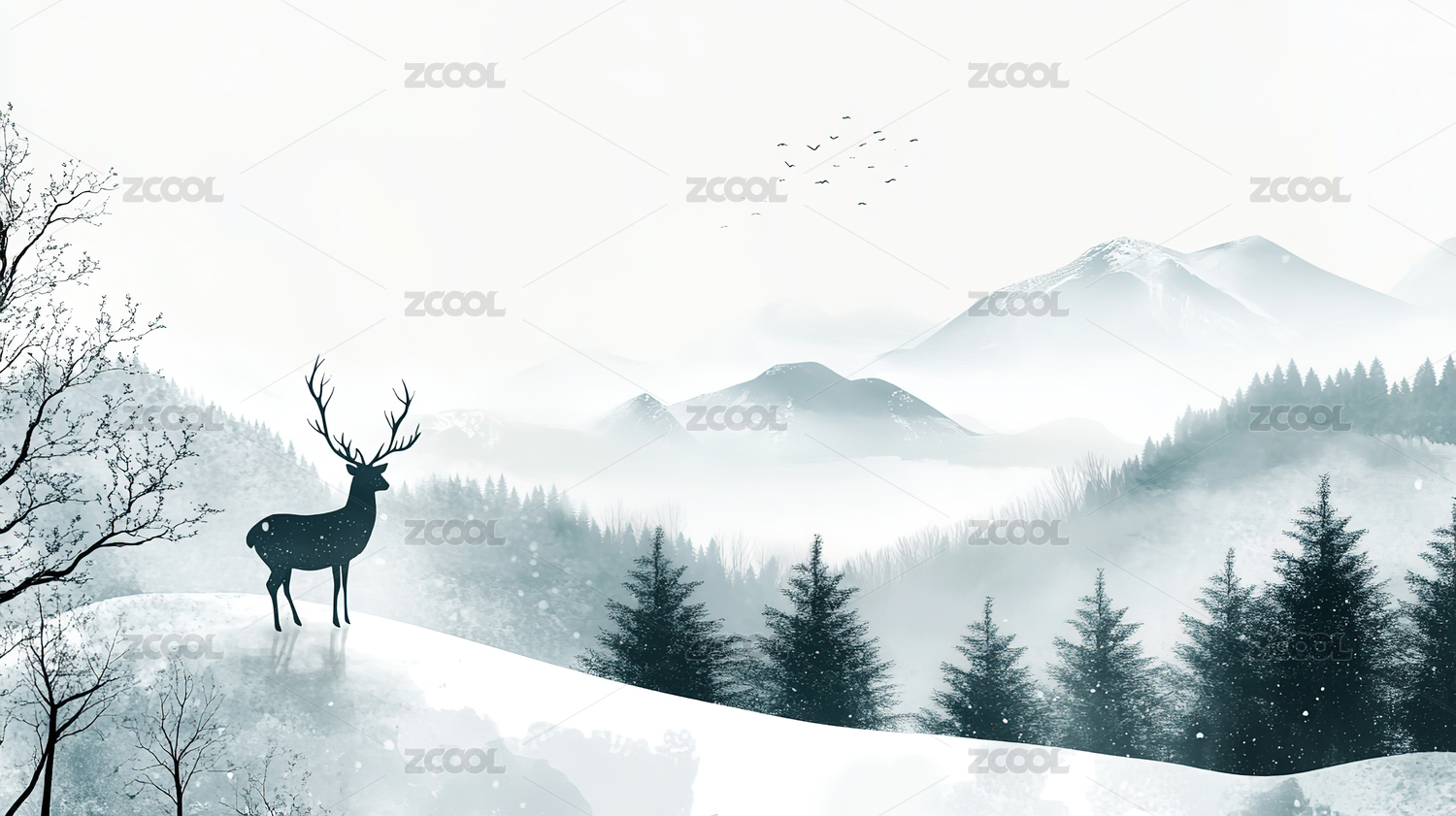 蓝蓝的天空下是壮阔的绿色草原和山峰插画背景