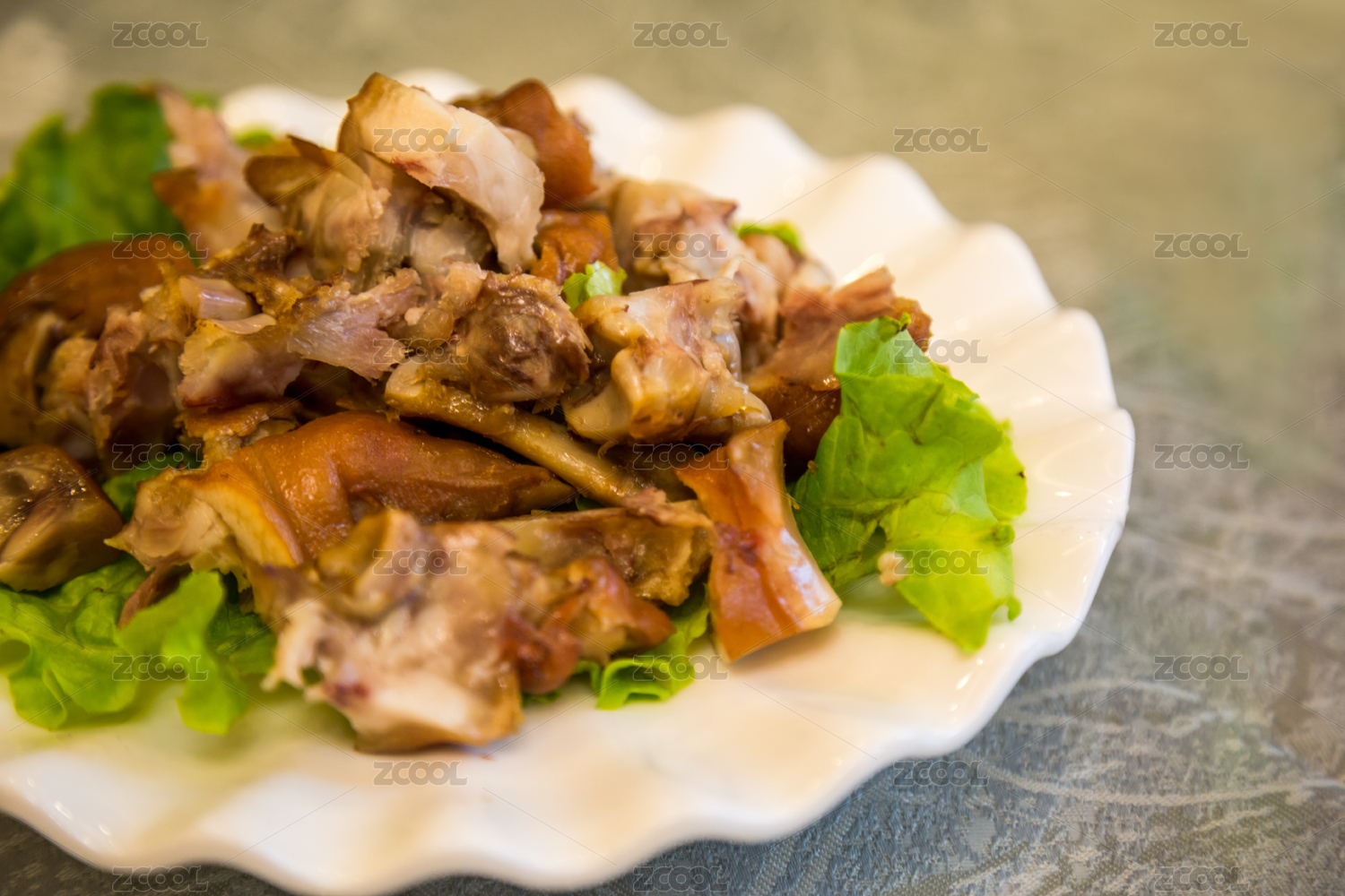 盘子里的凉拌五花肉