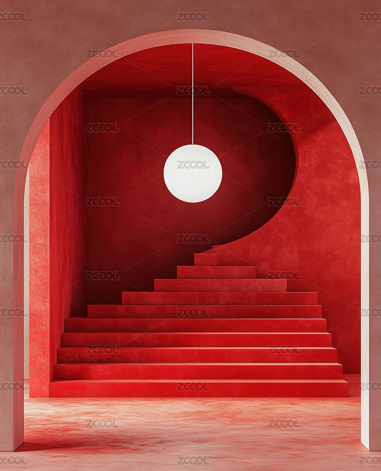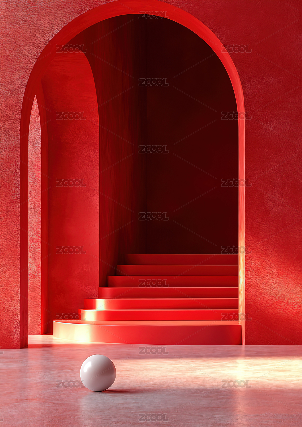 抽象极简主义拱门楼梯和球体