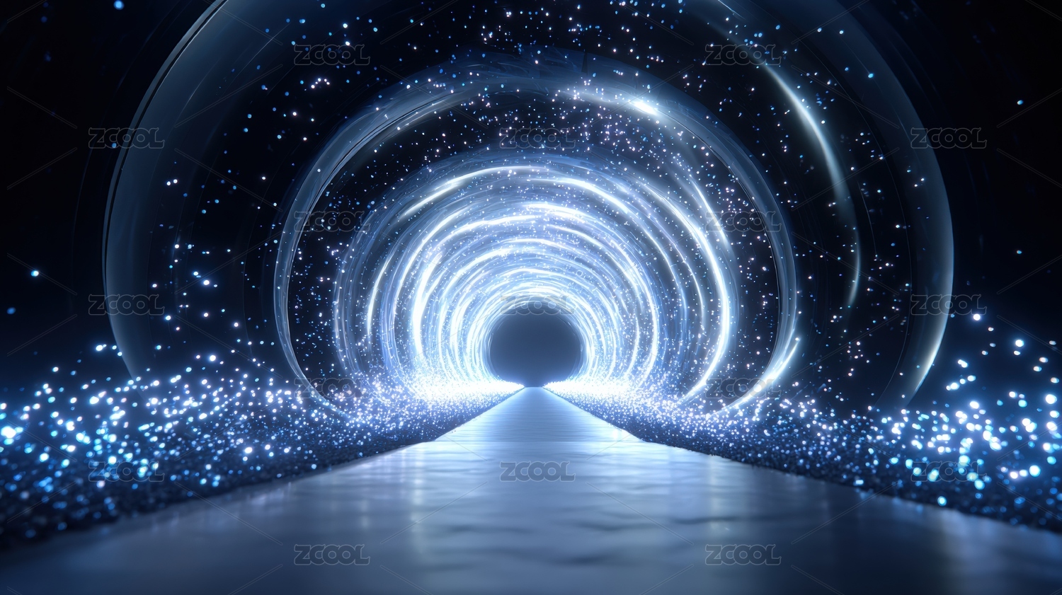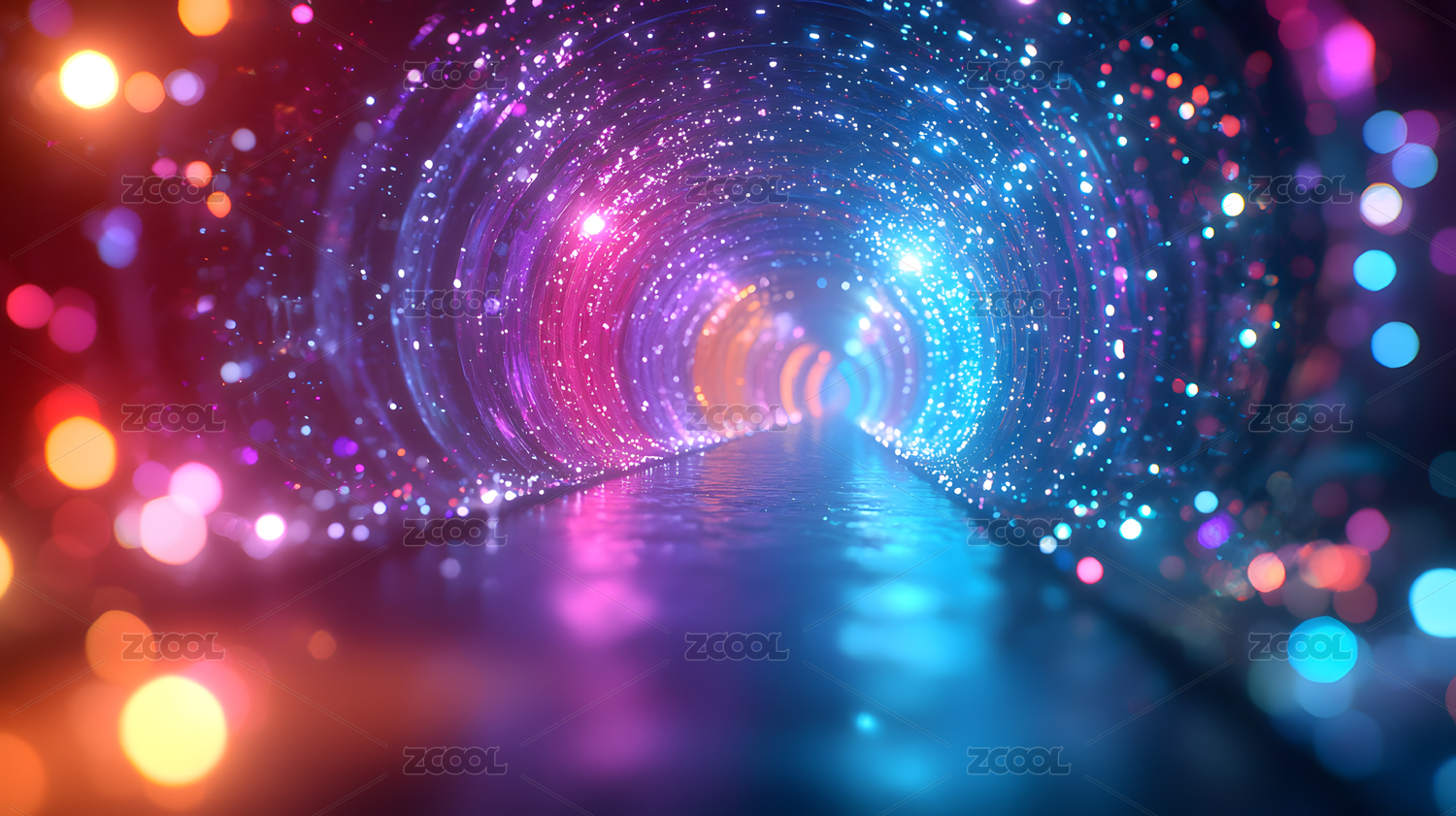 科技感发光光圈背景,蓝色背景上色彩斑斓的