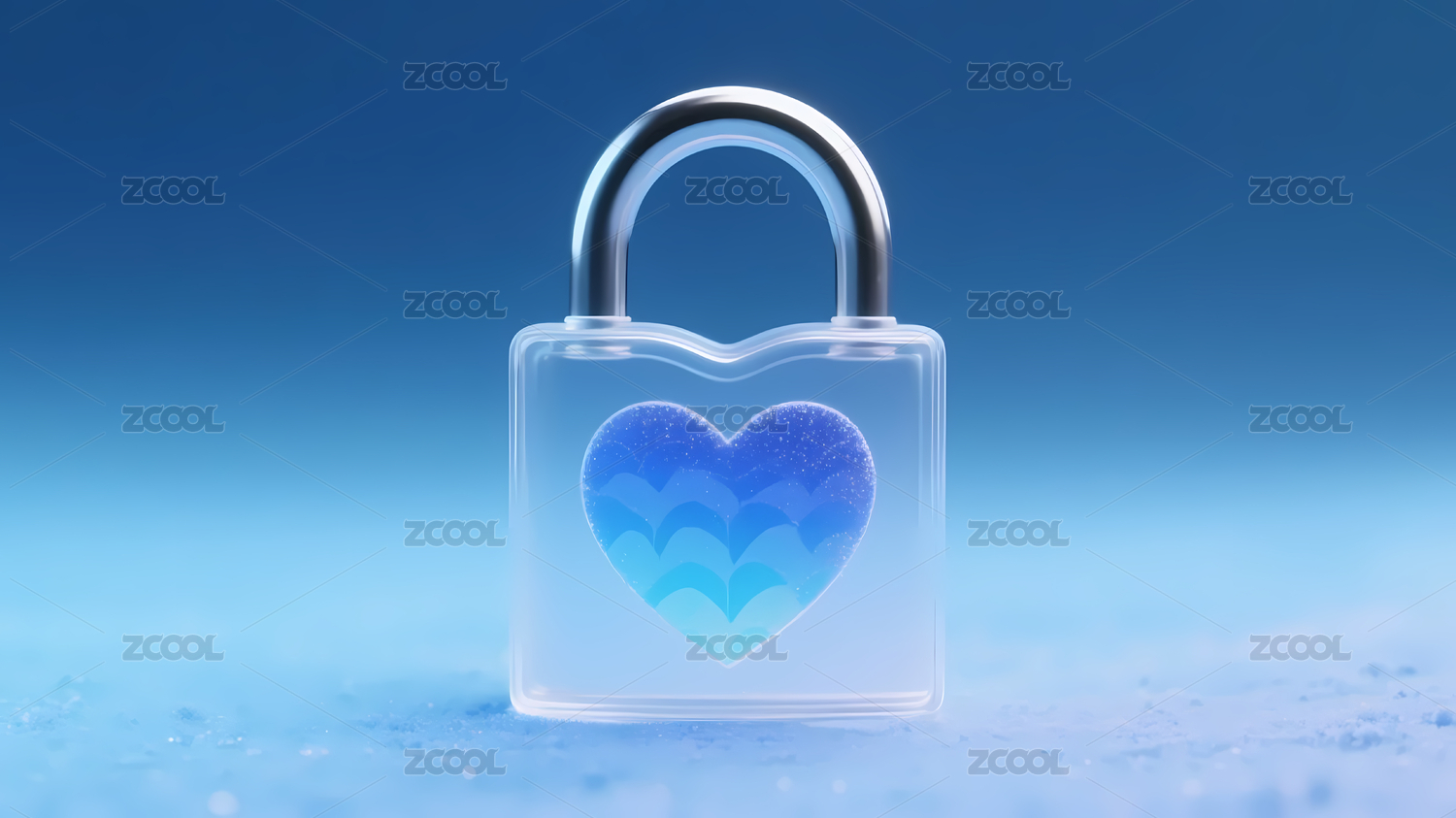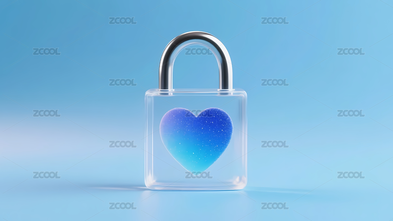 透明锁与蓝色心形