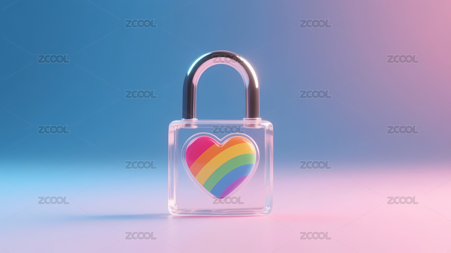 透明挂锁彩虹心形蓝粉背景