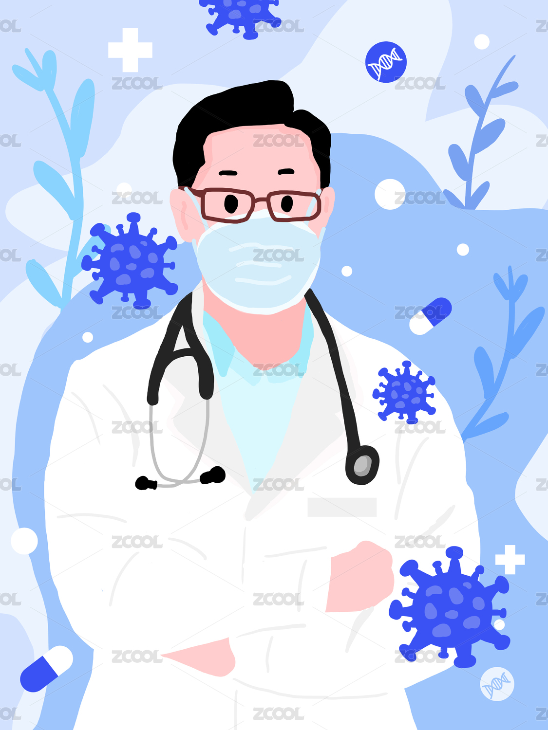 戴口罩,HEMEDI2020,病毒,简约,扁平,科技,蓝色,植物,互联网,插图