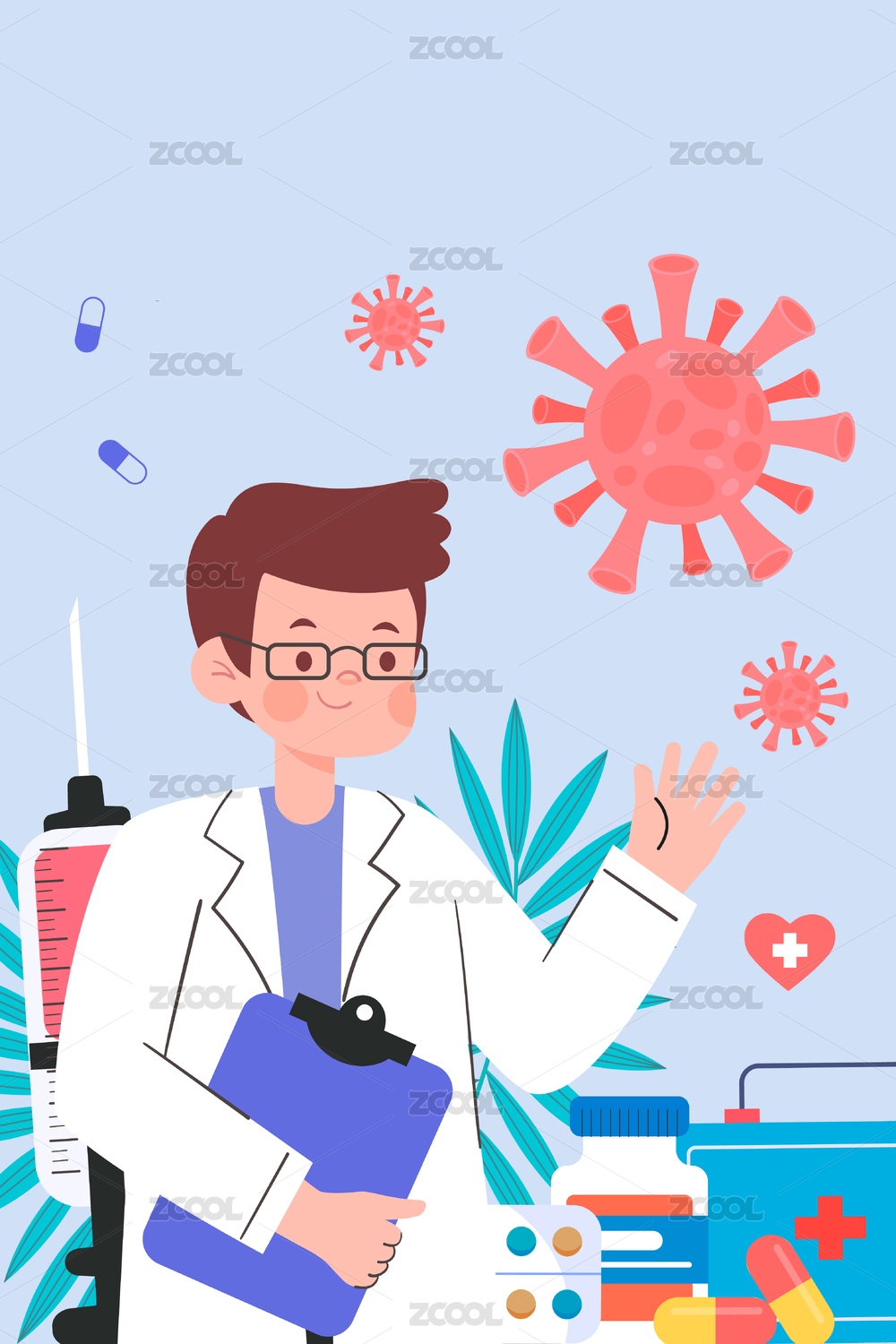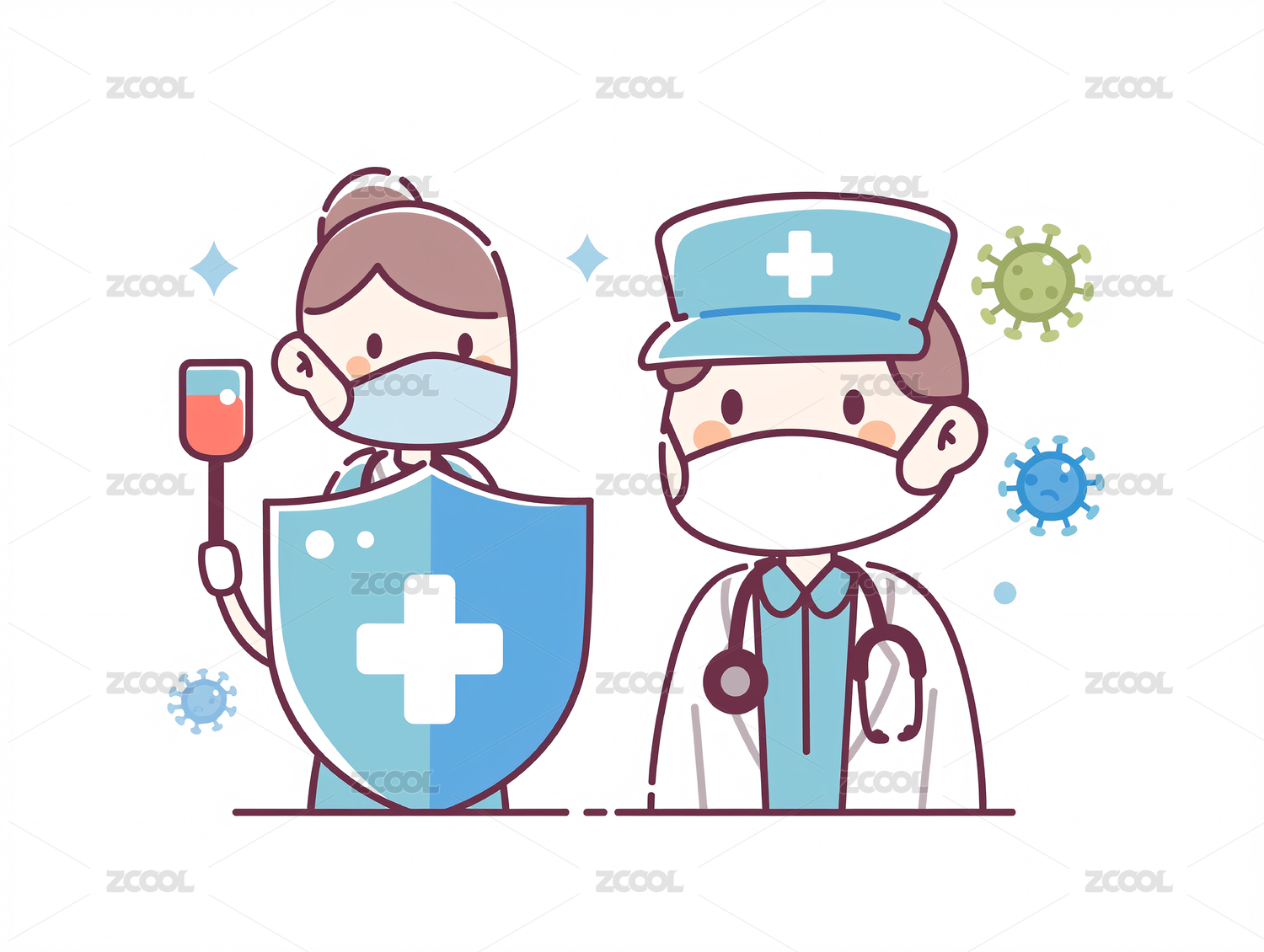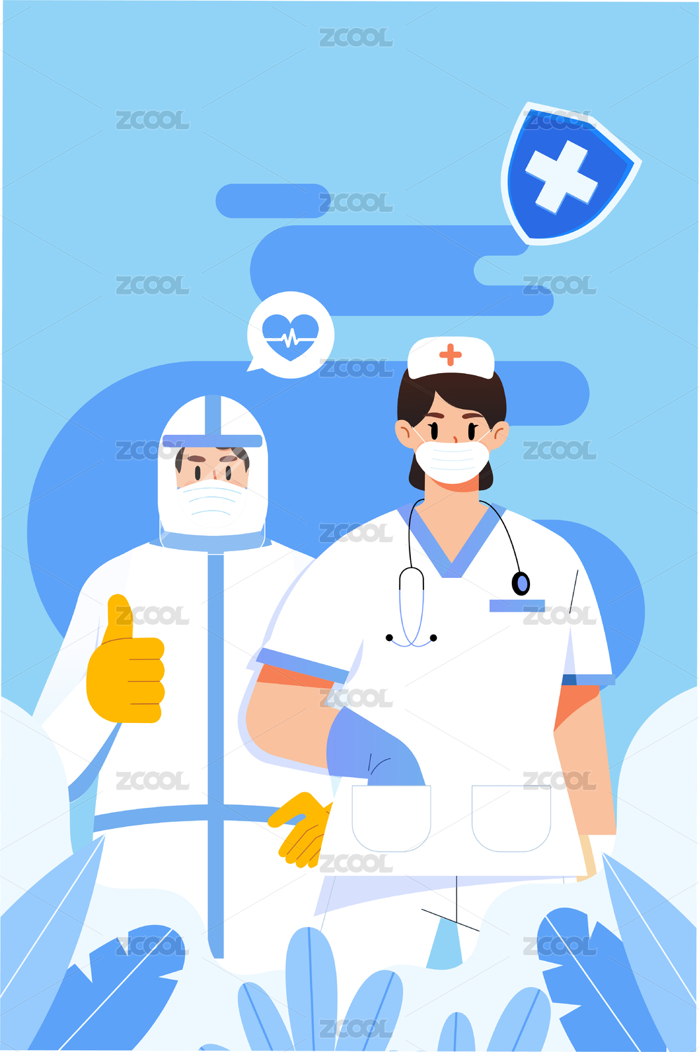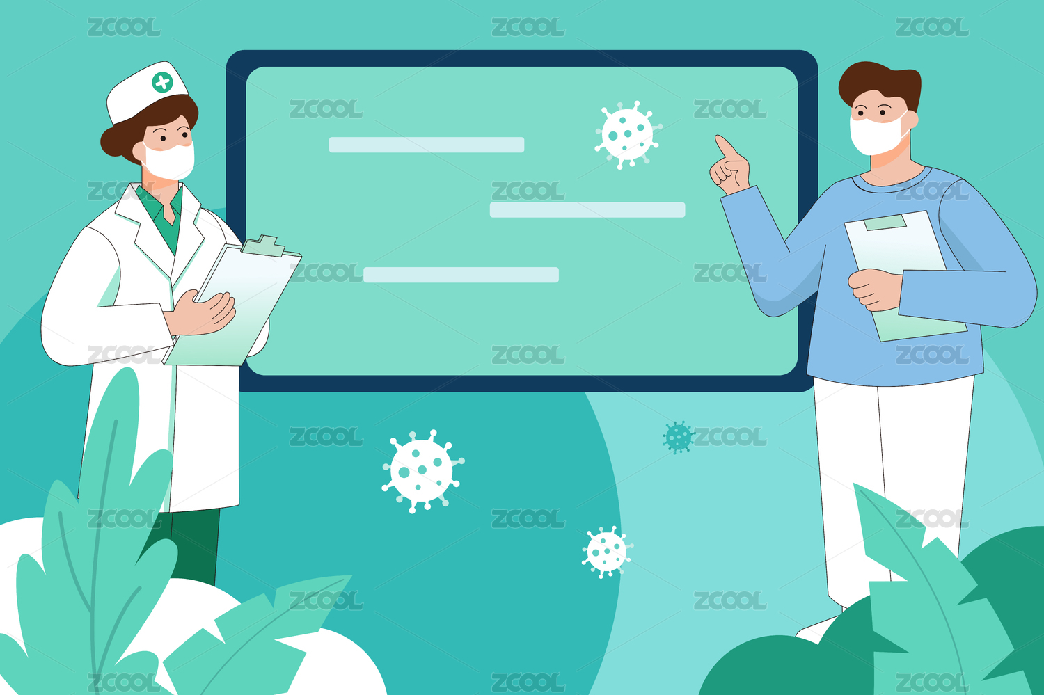 医生和护士抗击病毒疫情医疗健康矢量插画