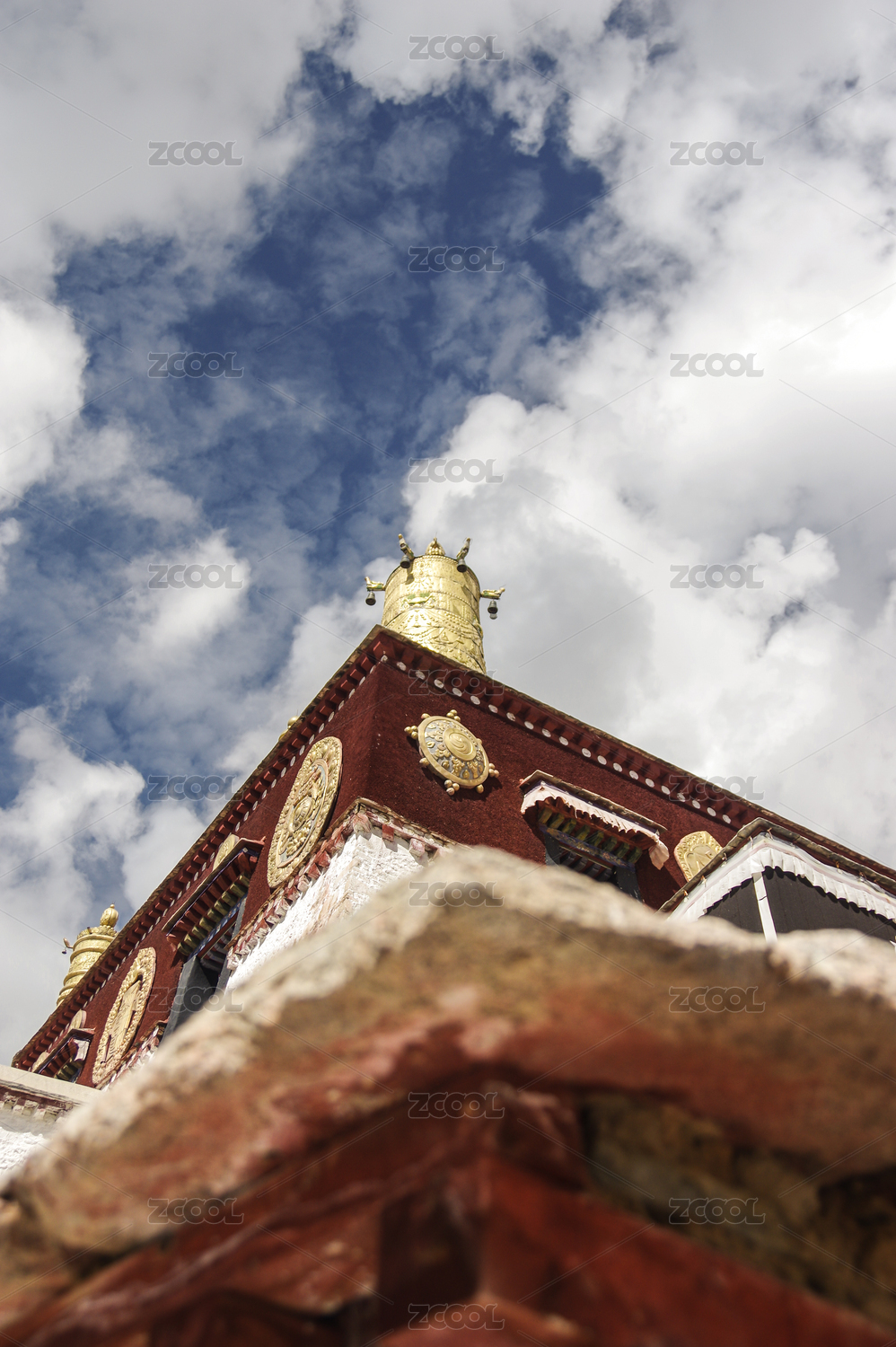 四川阿坝州松潘川主寺寺庙建筑和屋顶