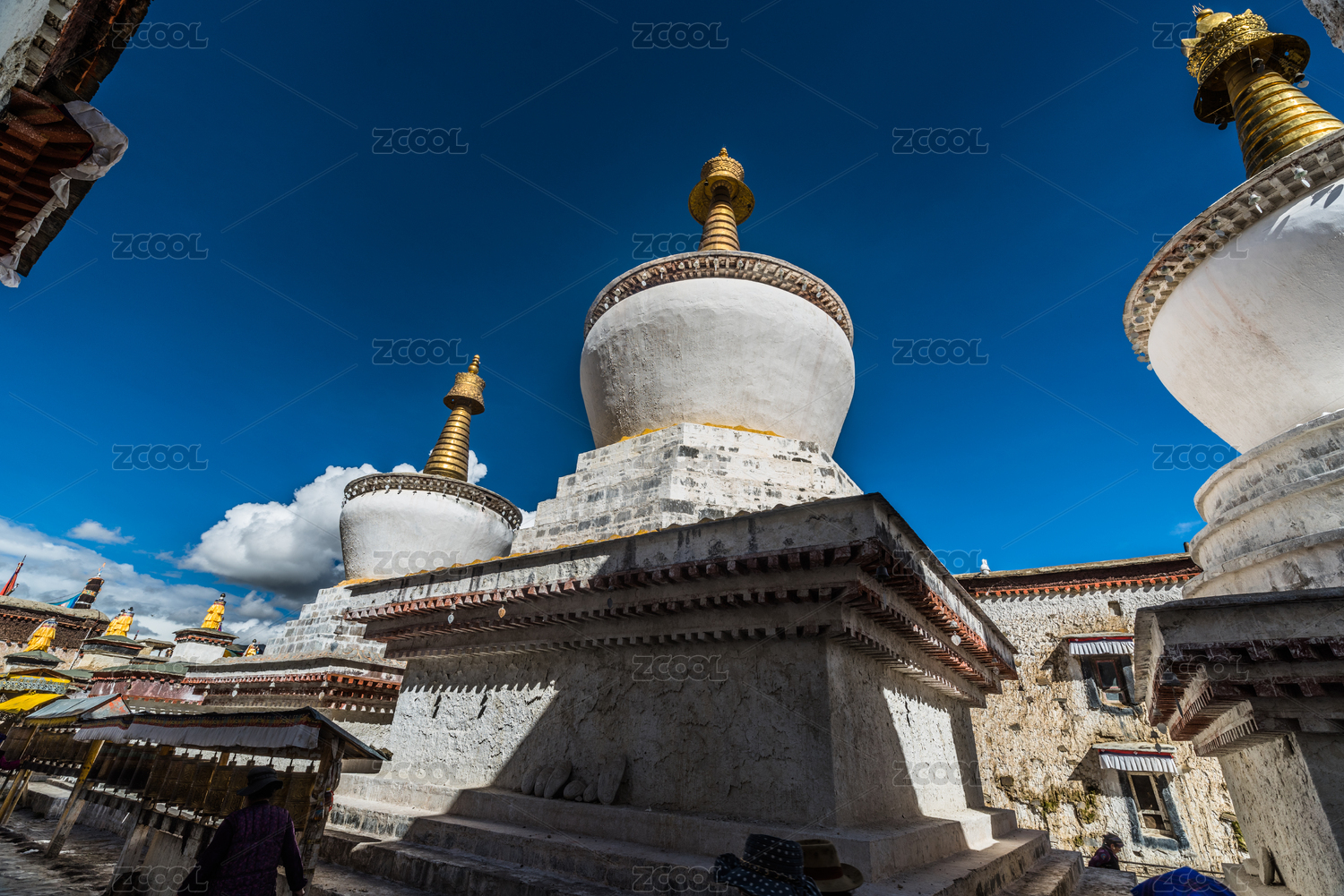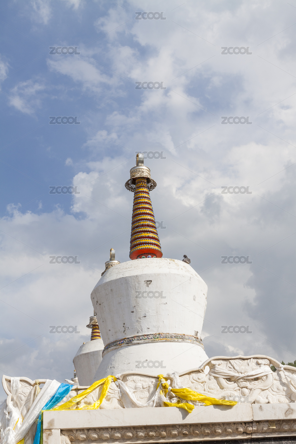 天空下青海省湟中塔尔寺入口处的的白色菩提塔