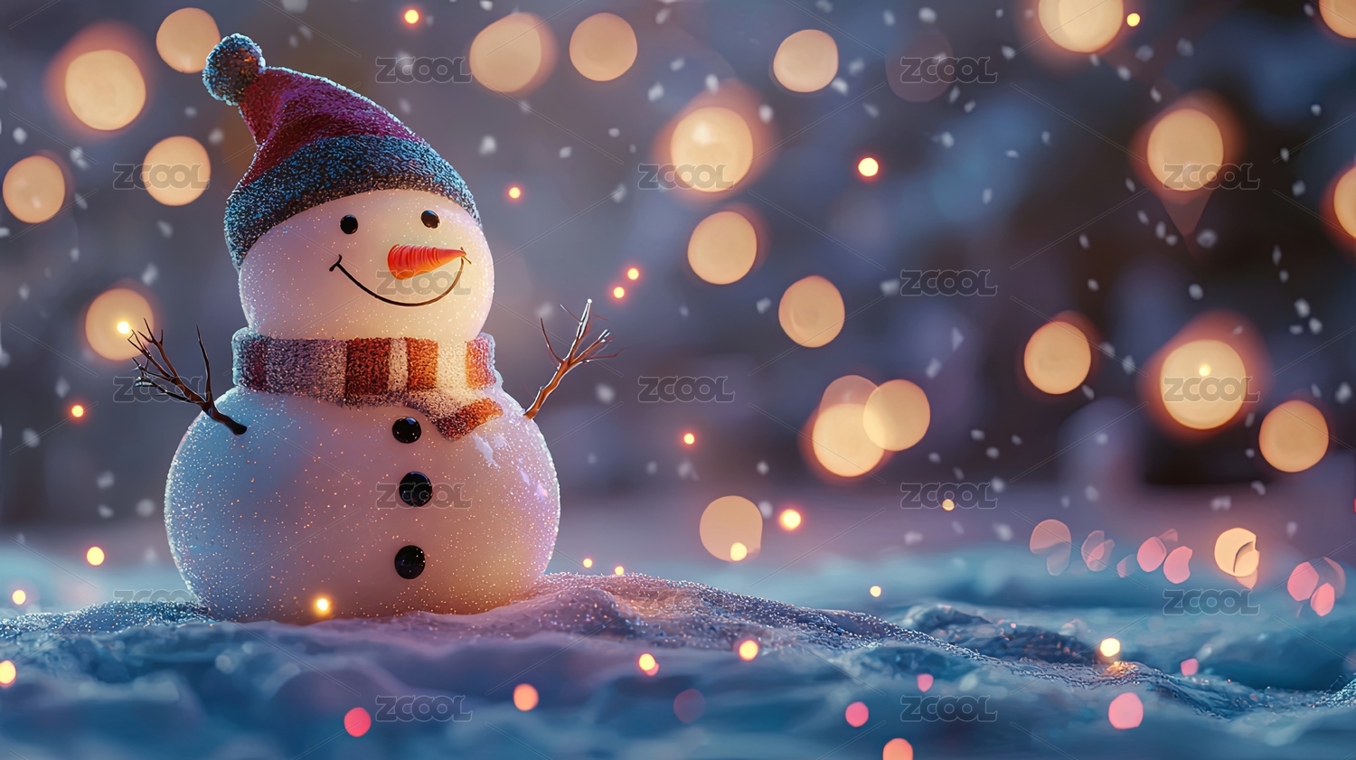 雪人与金色装饰品的节日场景