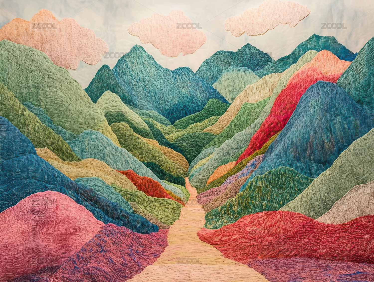 毛线针织风的风景插画