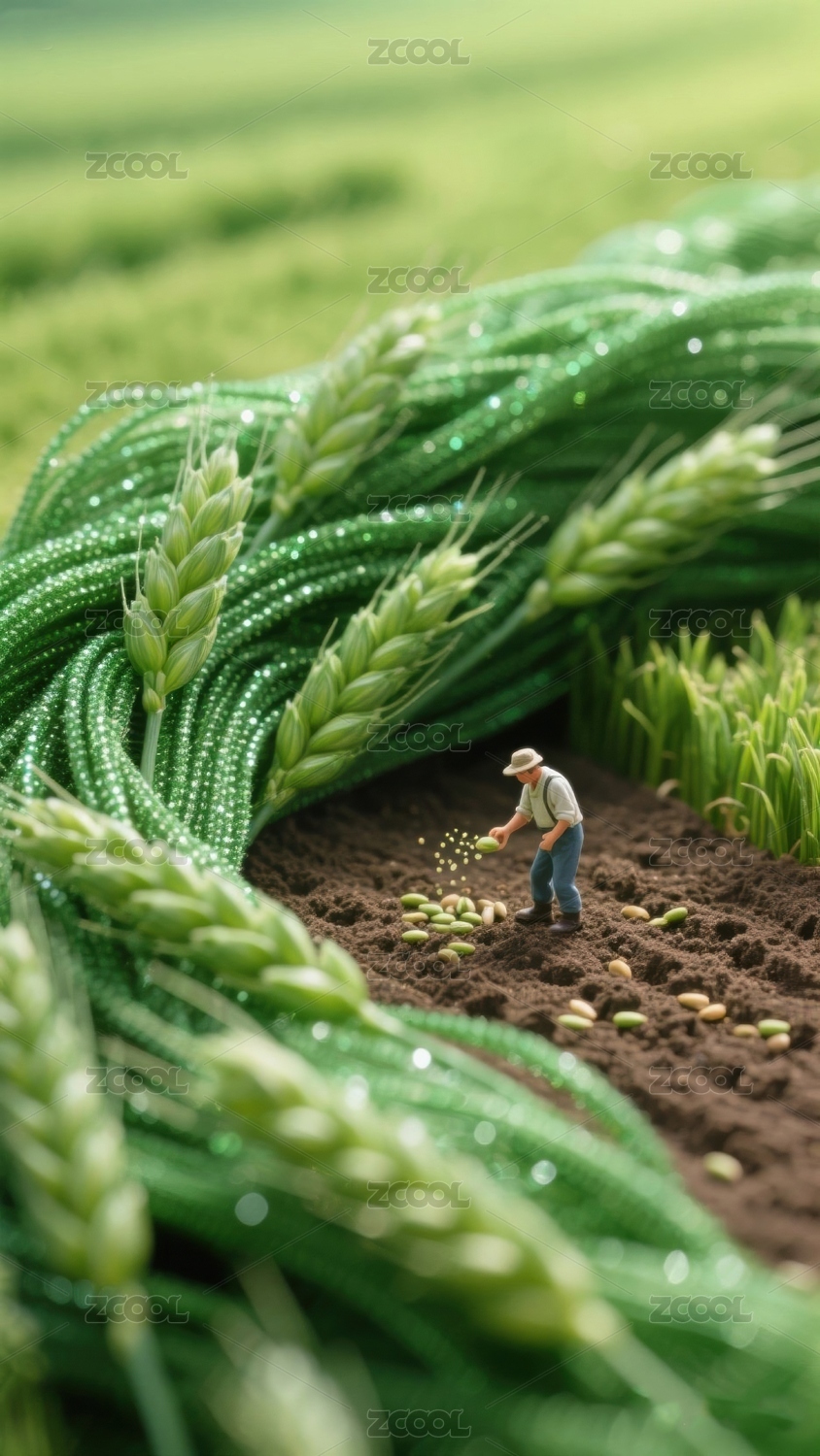 微缩世界农民在田地里劳作