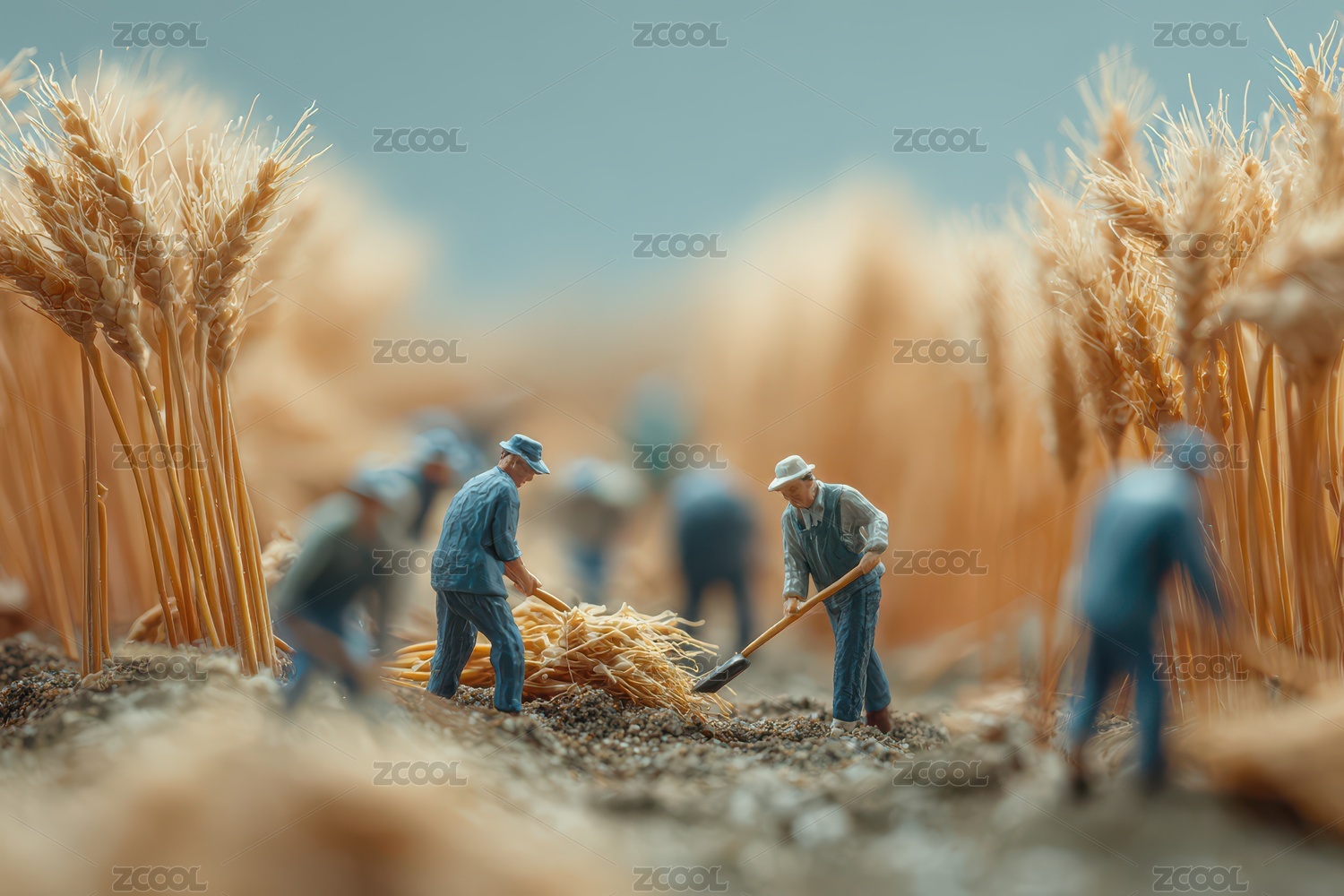 人偶微缩风麦田劳作场景