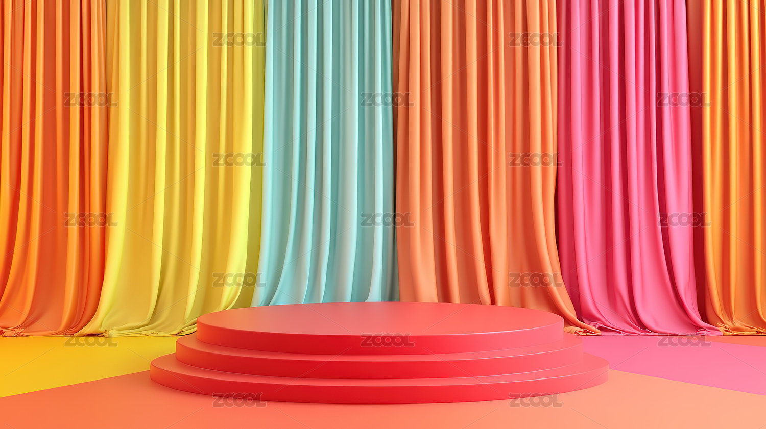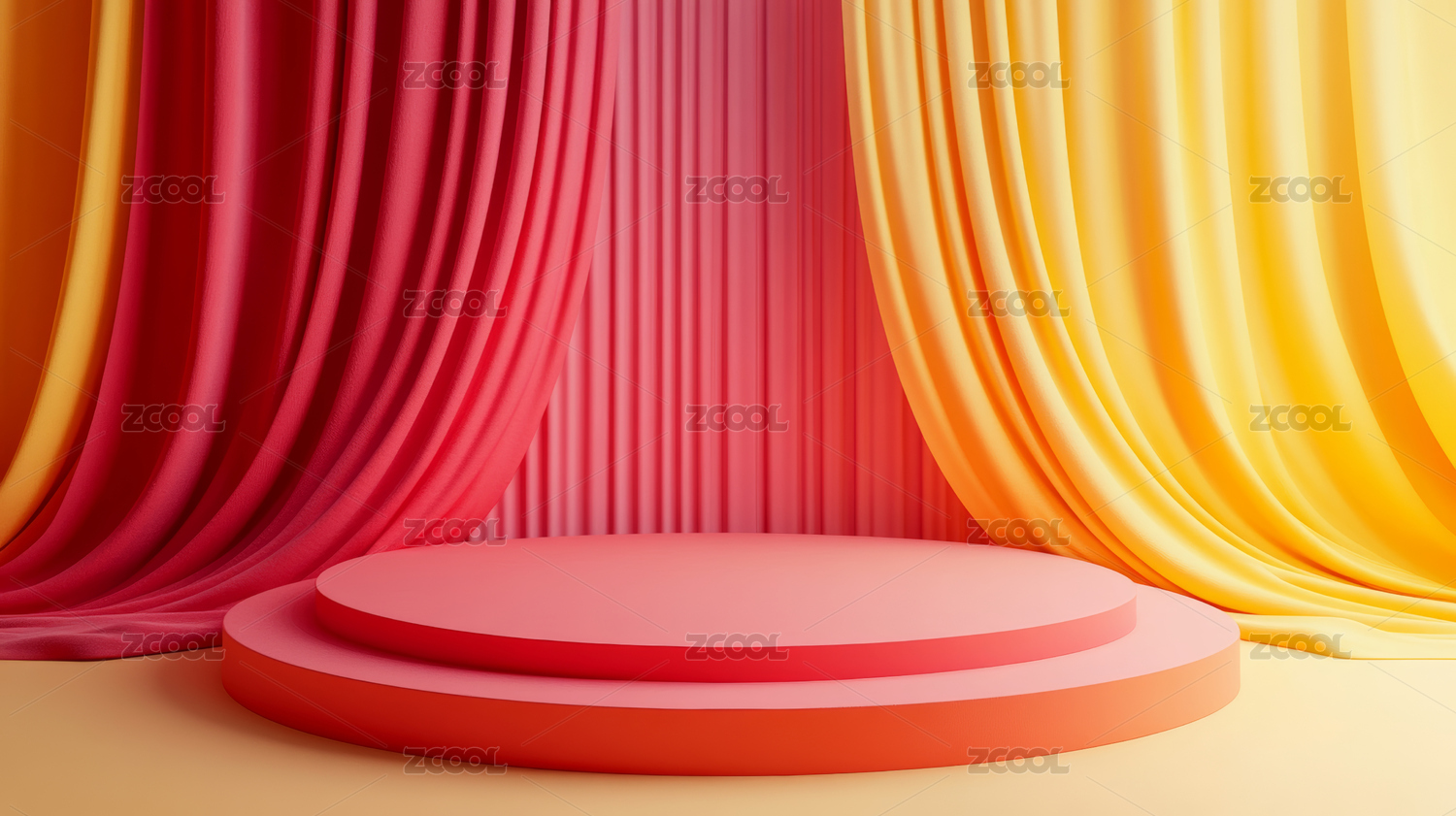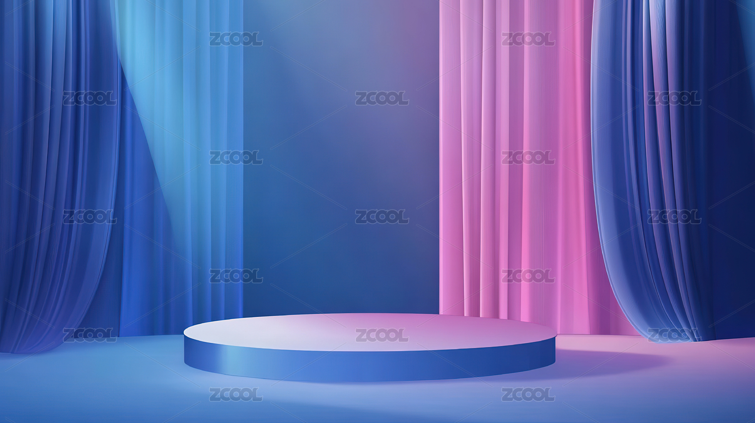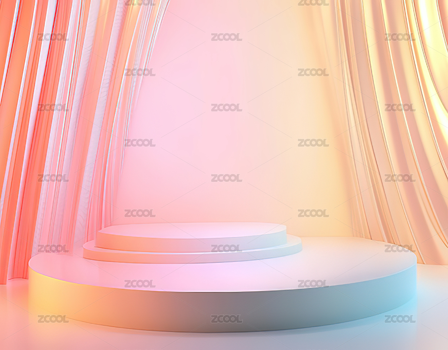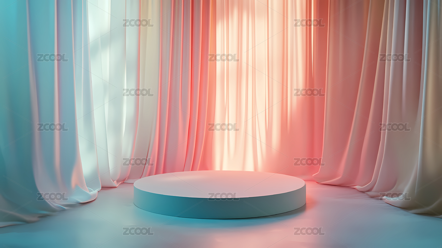 场景,展示台,电商,空间,简约,墙壁,粉色,明亮,布料,垂感