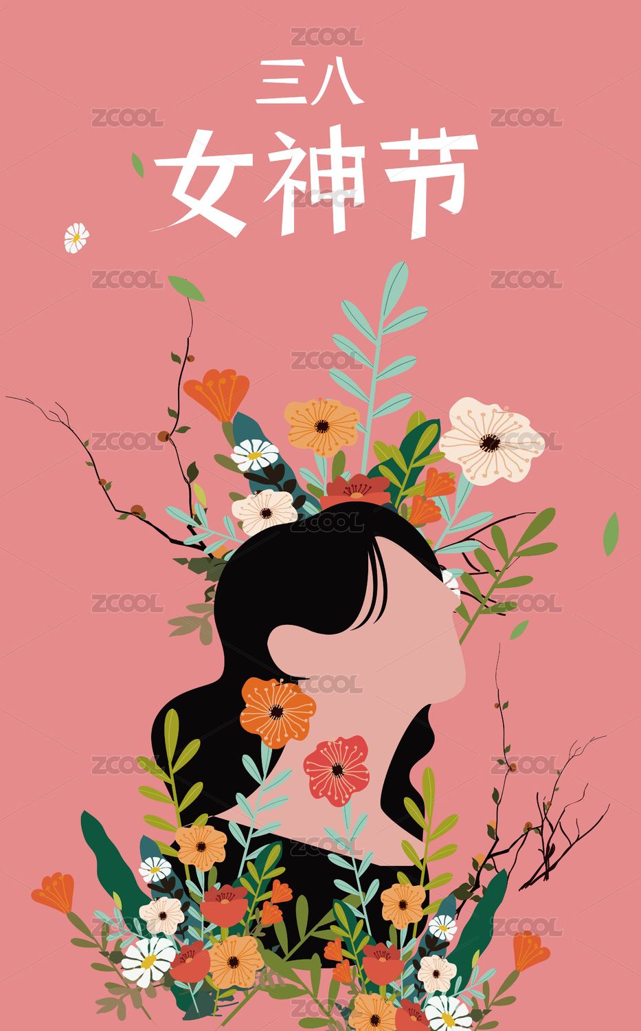 女神节插画矢量图海报