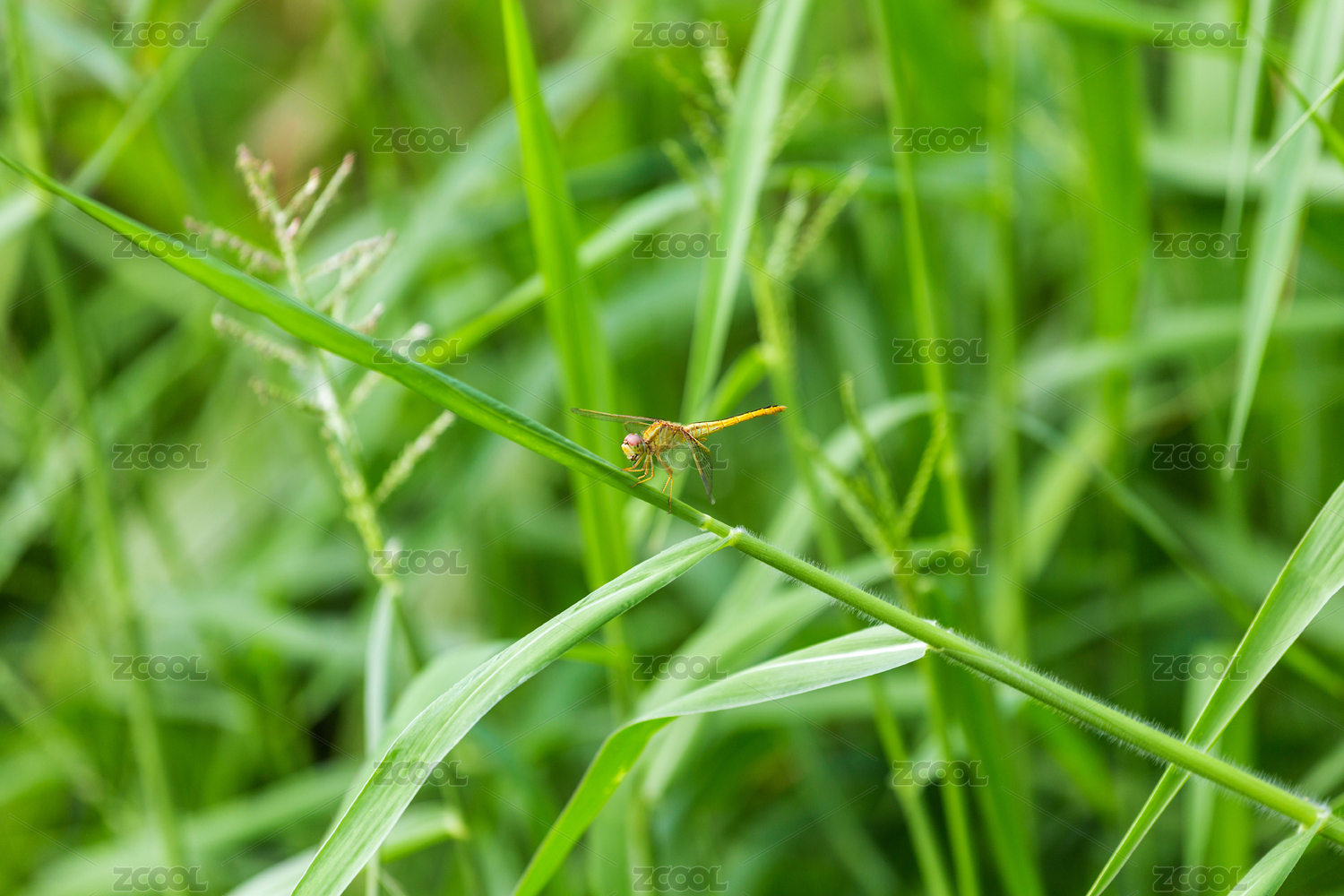 微距拍摄停栖在植物茎秆上的蜻蜓
