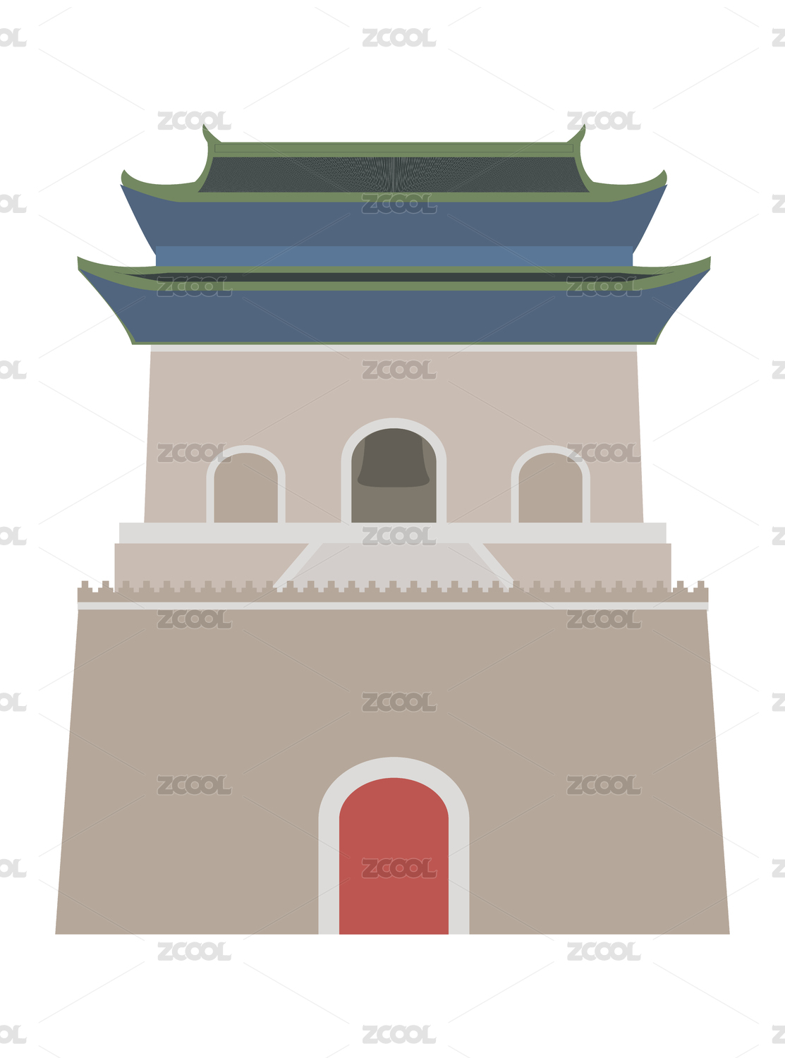 扁平风格中国陕西著名地标景点西安城墙插画元素