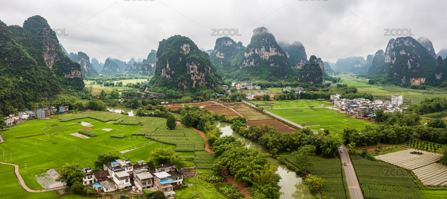 中国,广西,旅游目的地,天空,云,霞,航拍,广角,大场景,远山