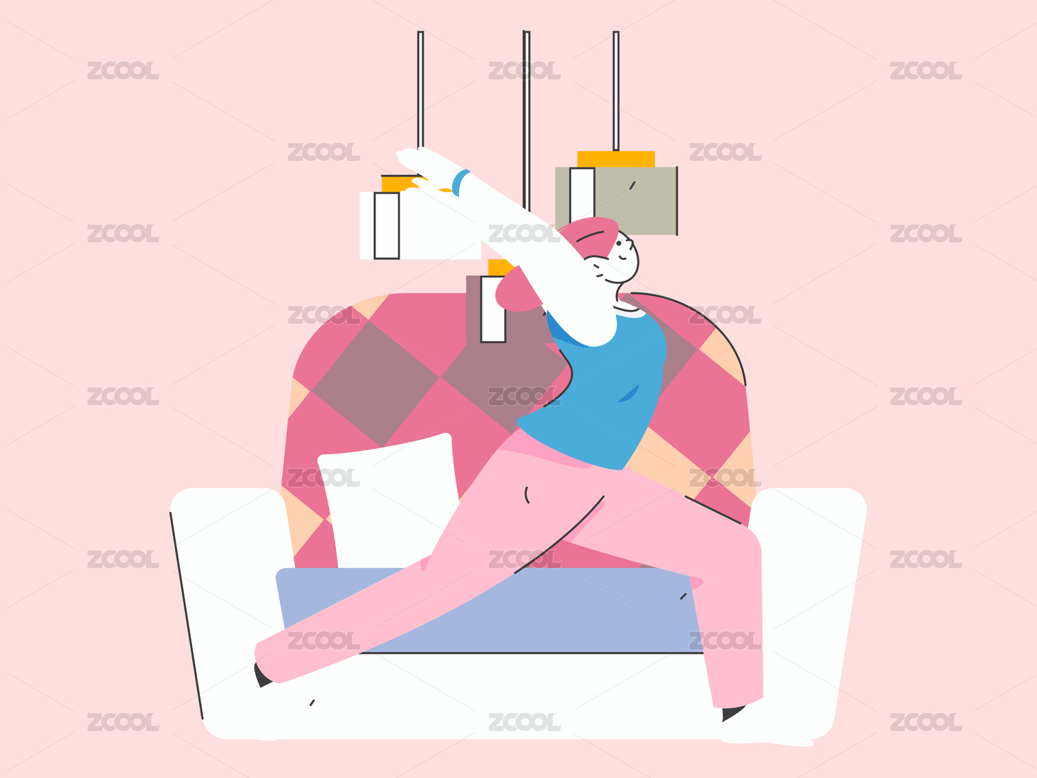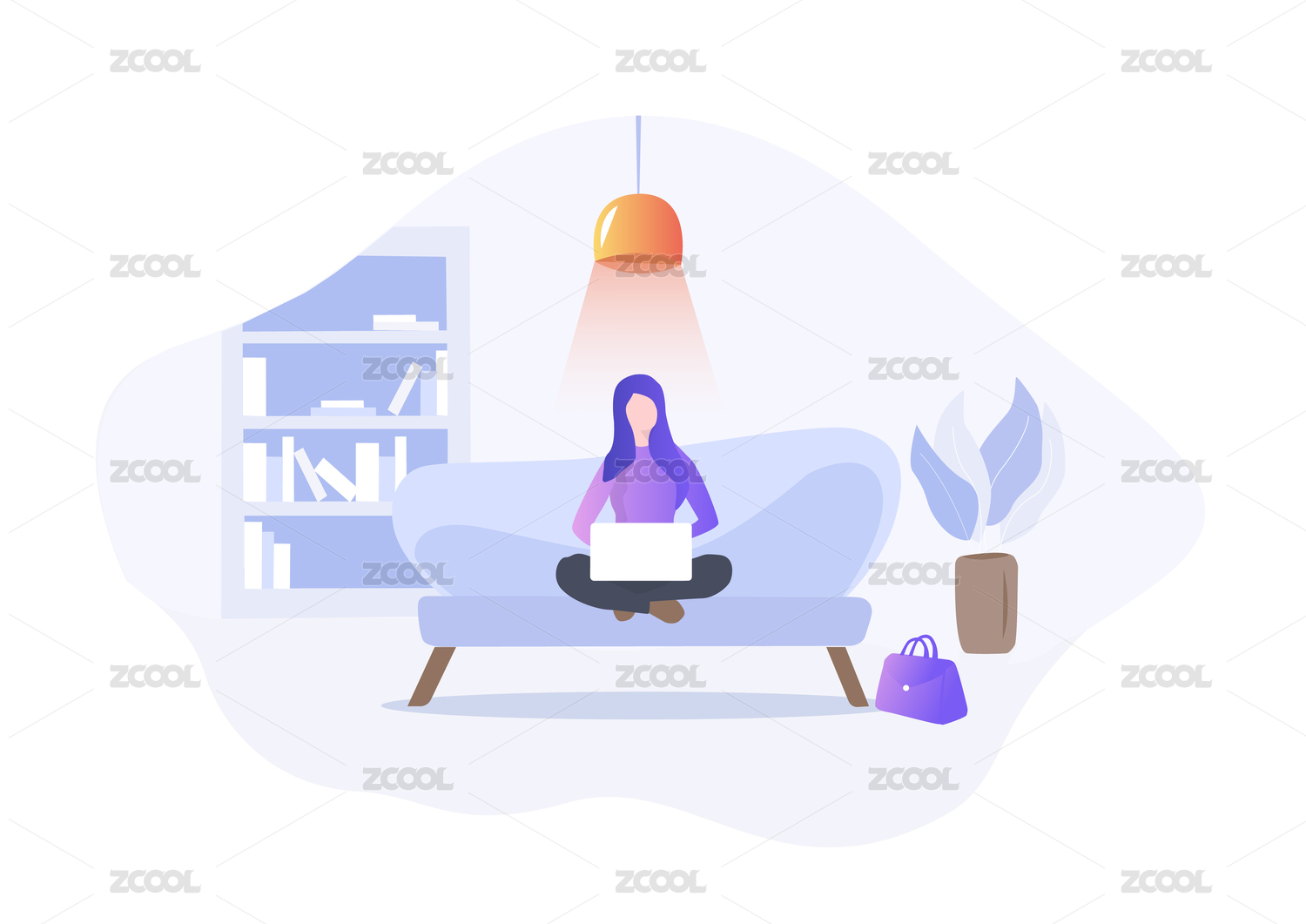 室内客厅沙发居家办公插画自由职业宅家海报