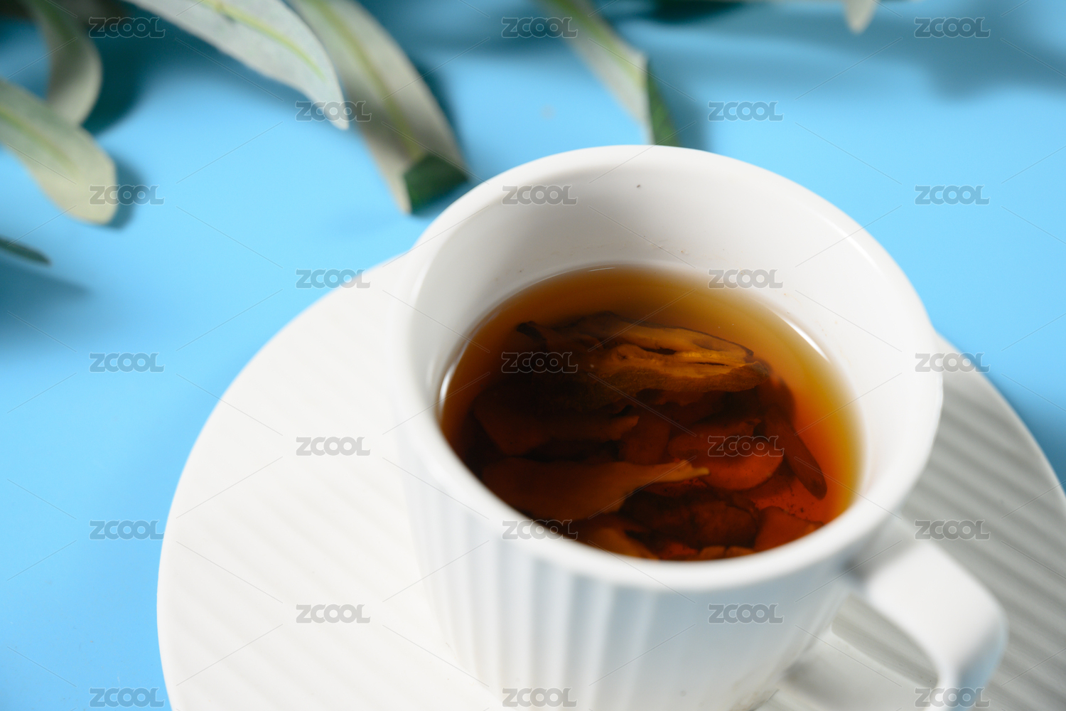 桌面上的杯子里的甘甜可口的陈皮白茶