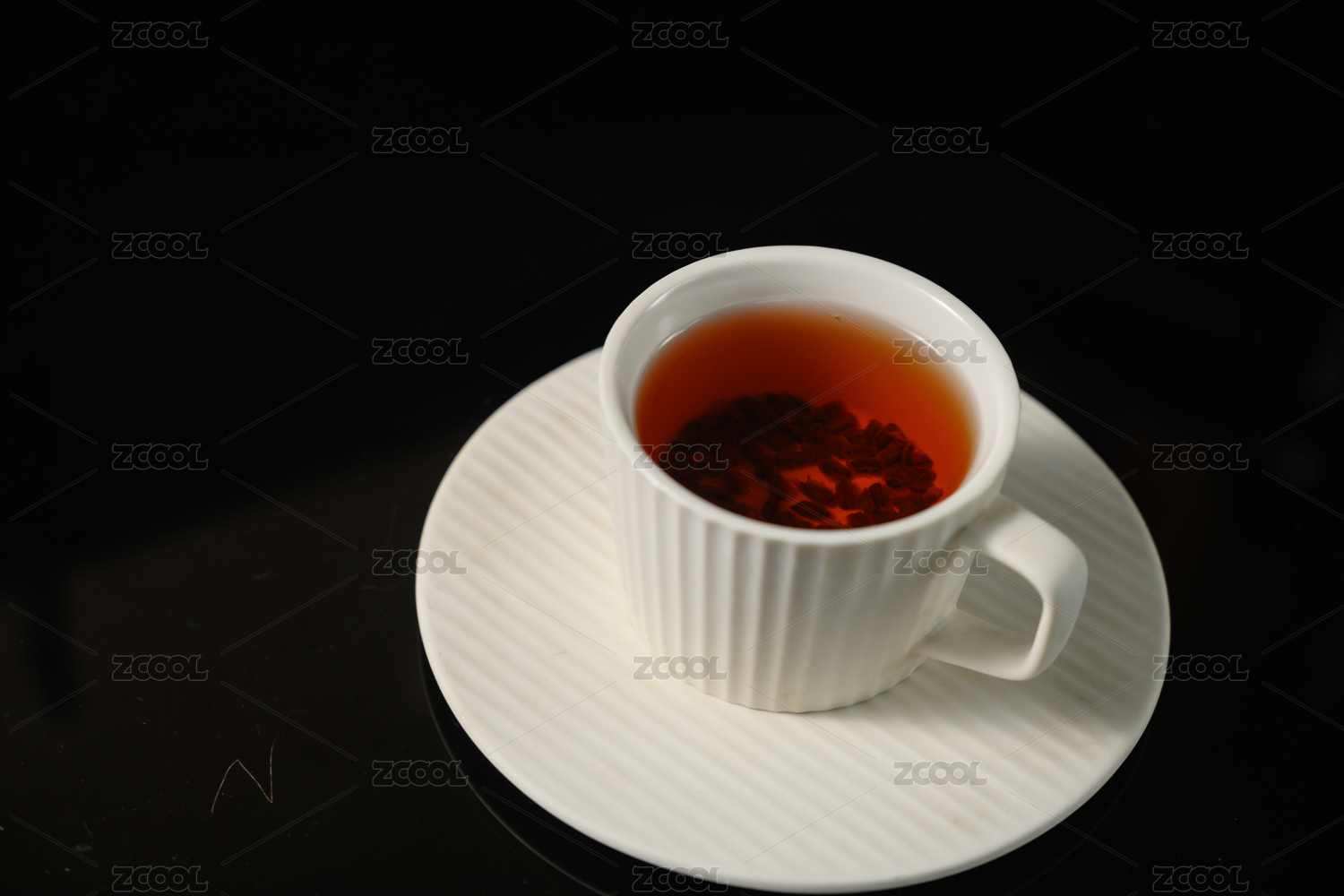桌面上的杯子里的甘甜可口的胰岛果茶