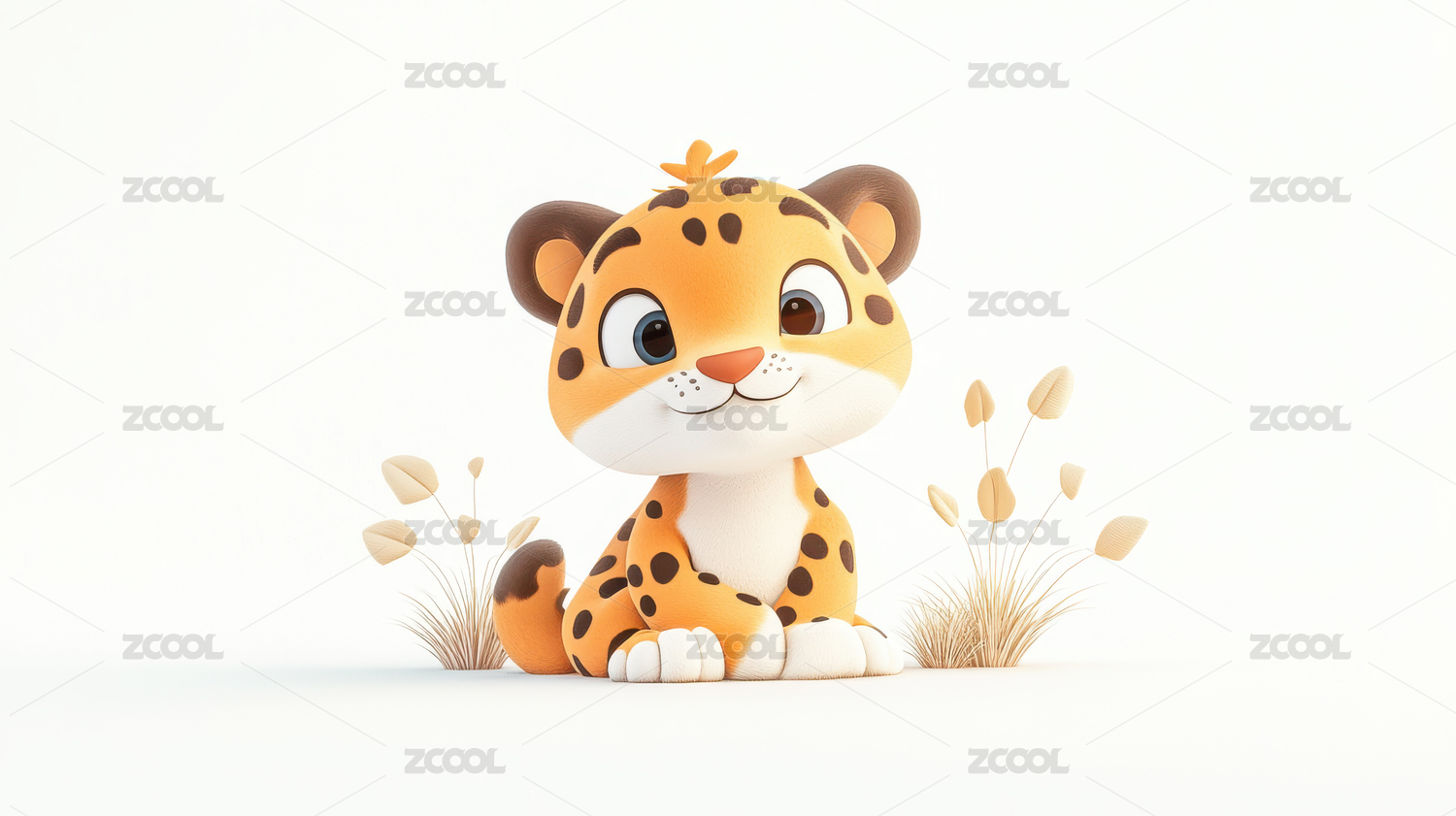 猎豹花豹可爱唯美野生动物3D卡通插画壁纸
