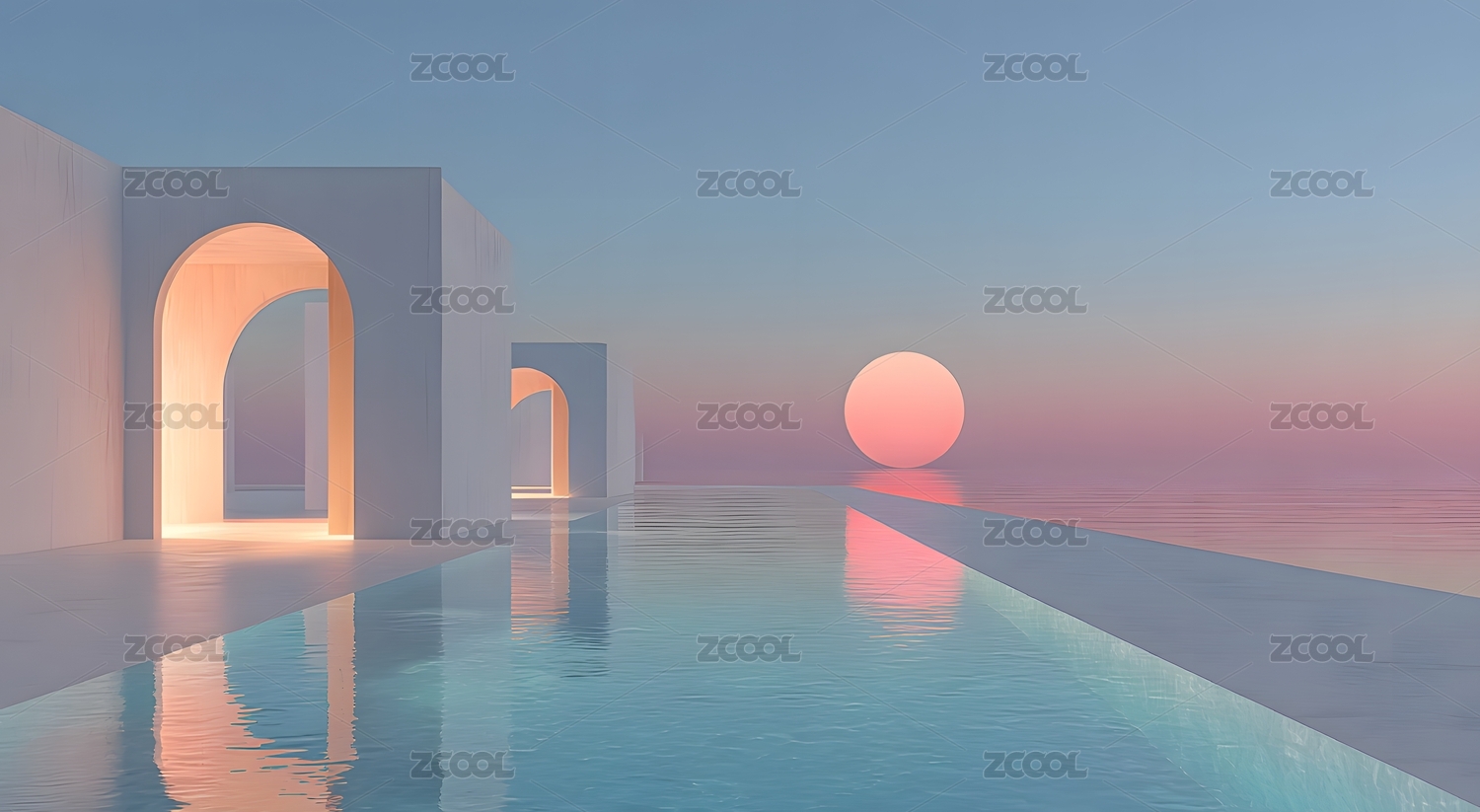 反射,现代,建筑,空间,艺术,未来感,光影,宁静,简约,几何