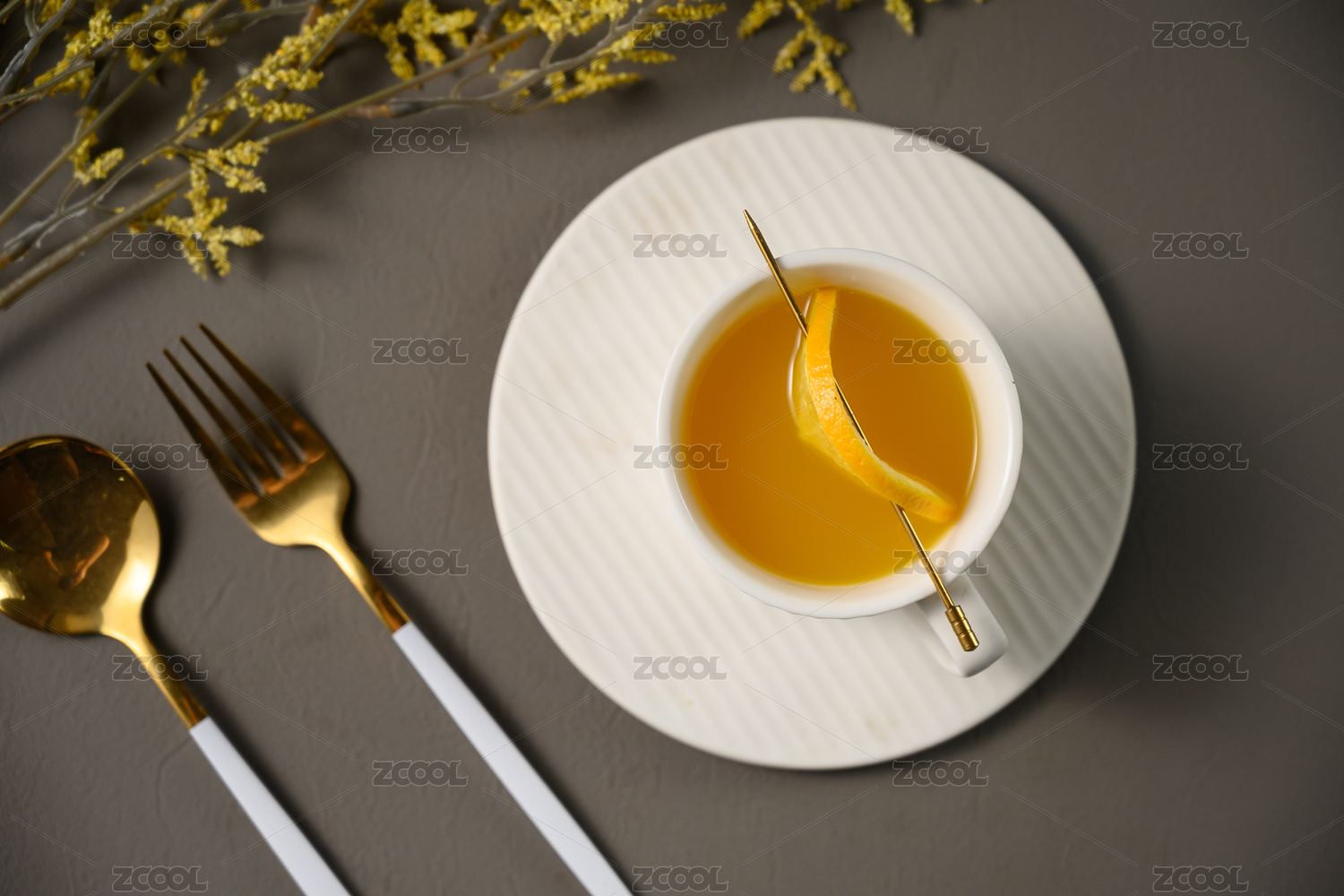 桌面上的杯子里的甘甜可口的金盏菊花茶