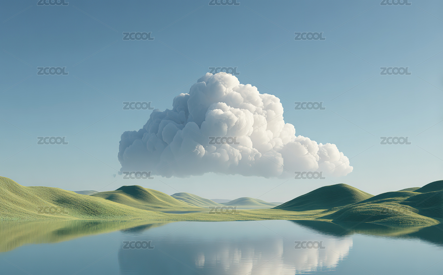 云影倒映在湖面的山丘