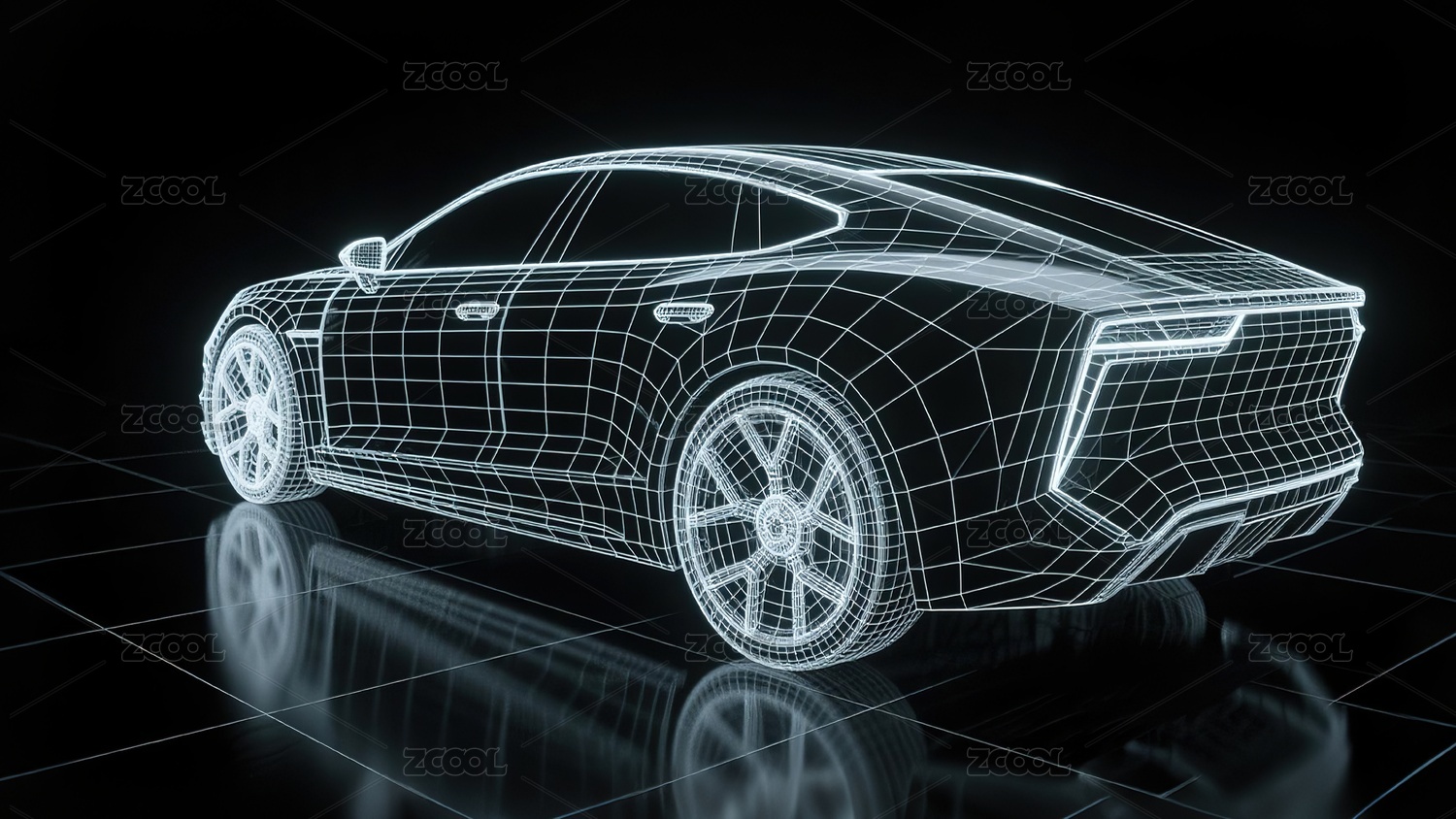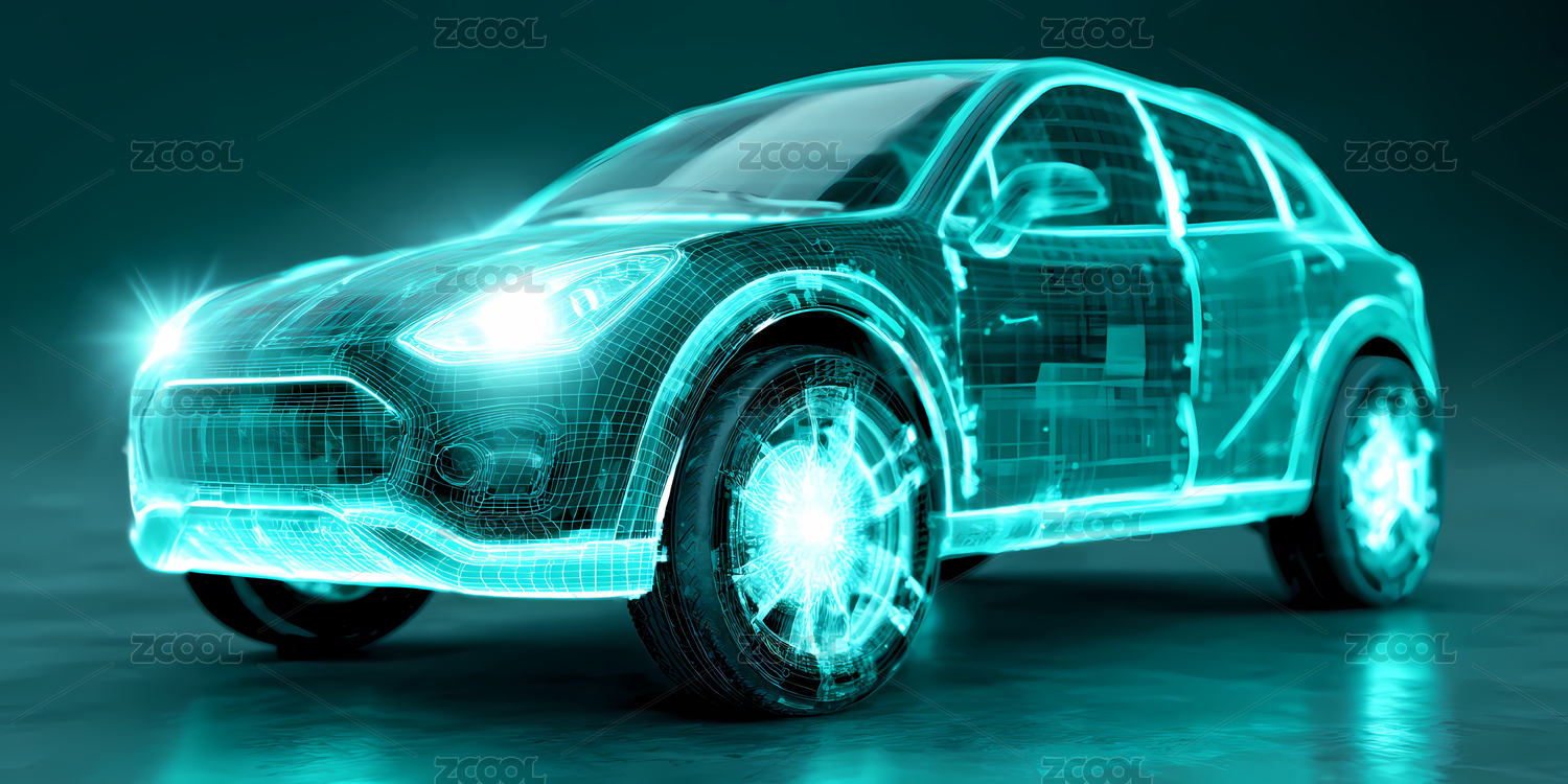 汽车,3D,全息,全息投影,X光,透视,立体,框架,线框,蓝色
