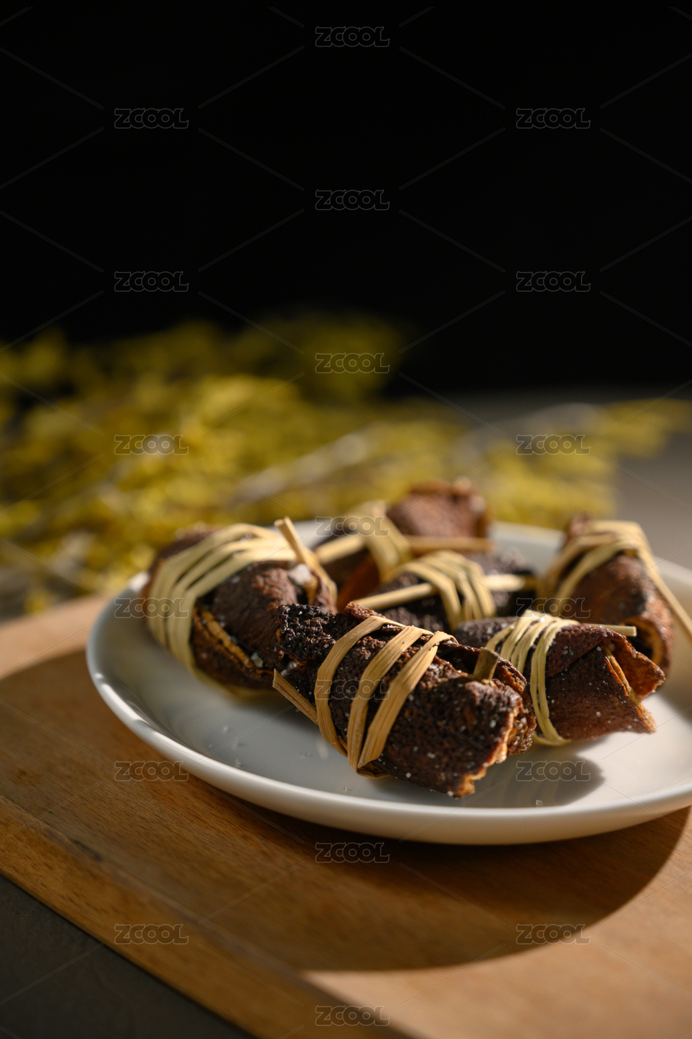 桌面上的盘子里的美味可口的陈皮三宝扎