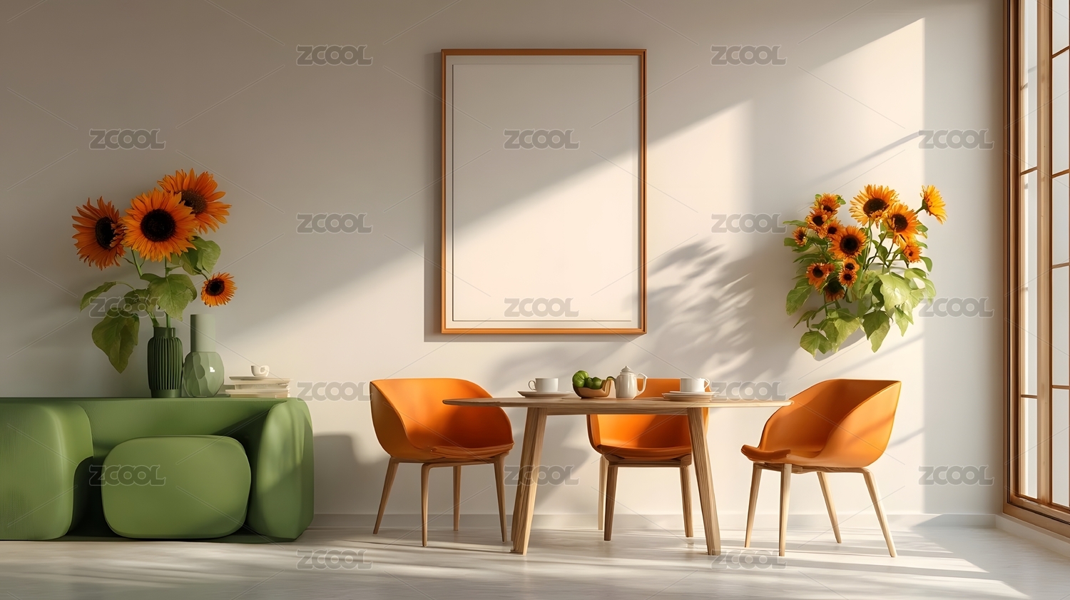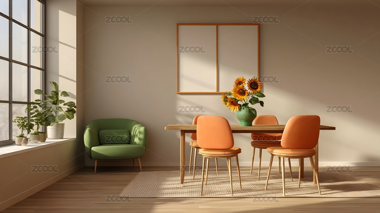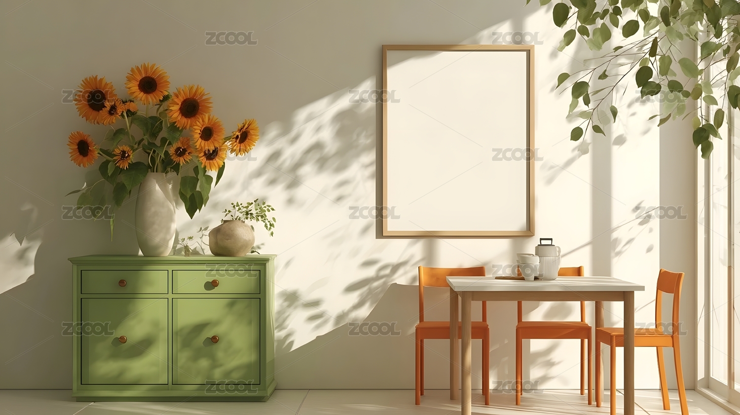 室内绿植与向日葵装饰