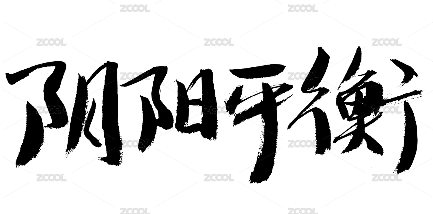 阴阳平衡中药名称手写书法字体