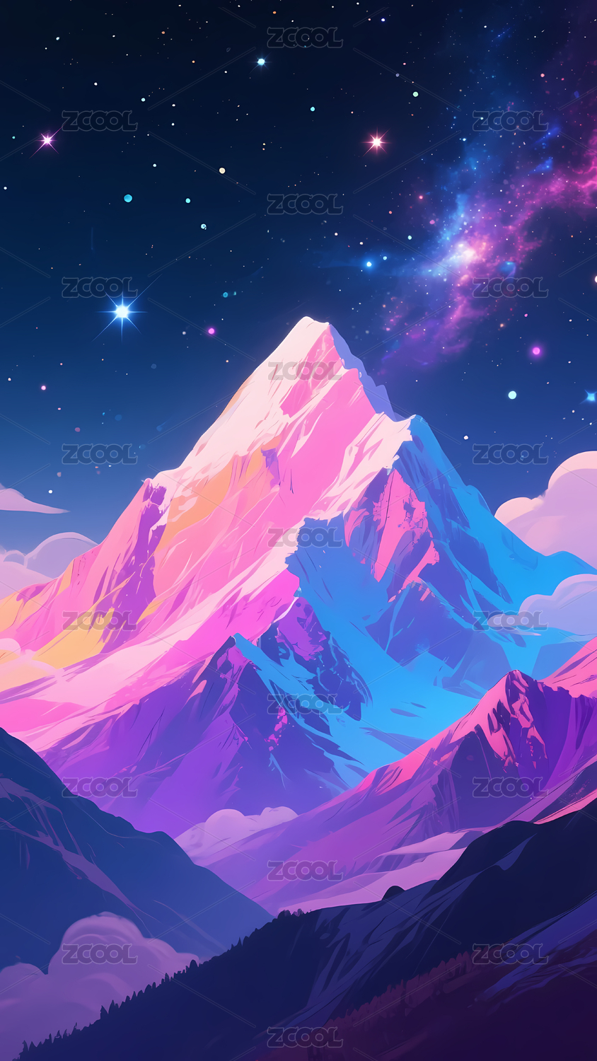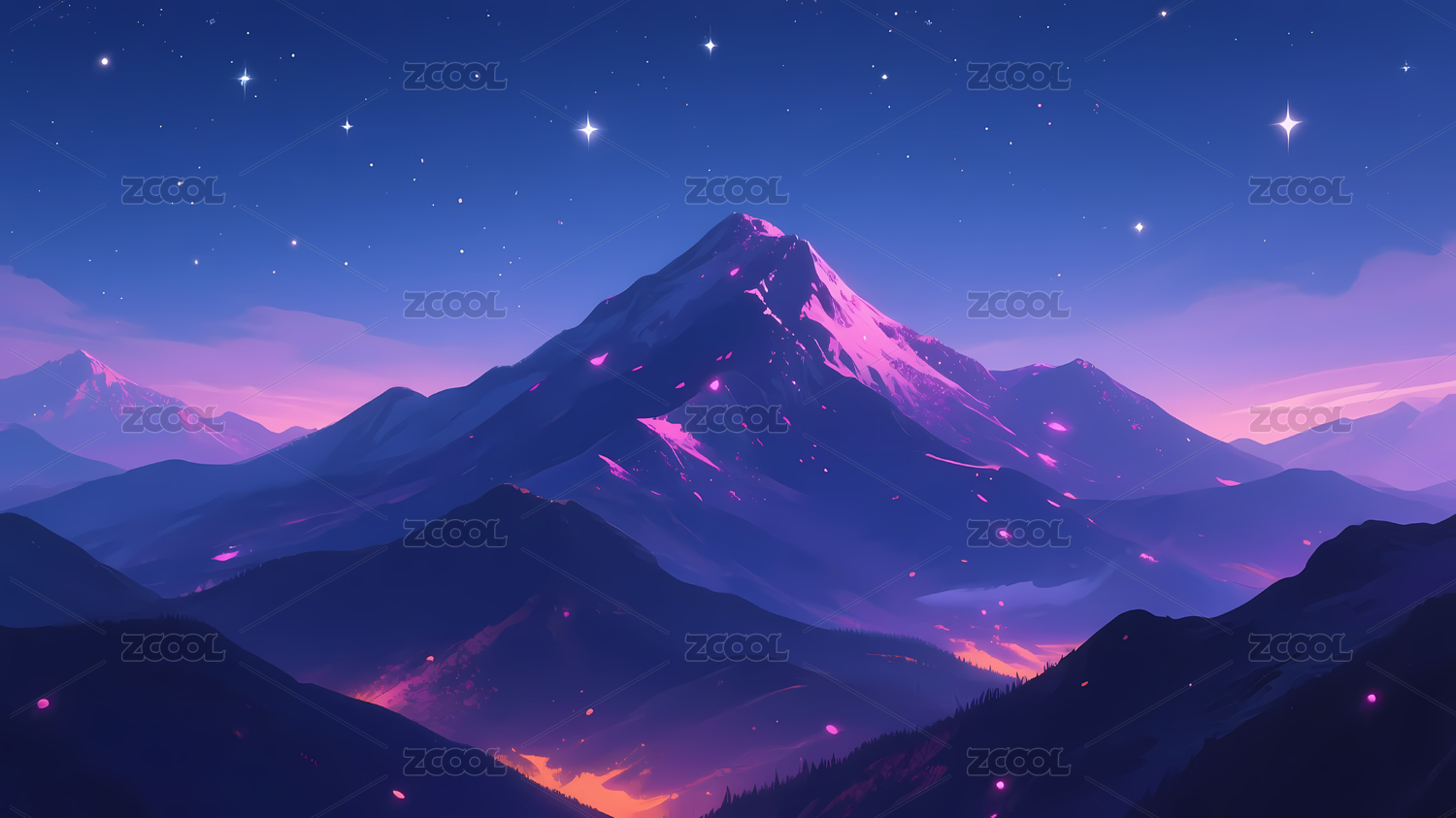 手绘唯美的抽象艺术感夜晚天空风景插画