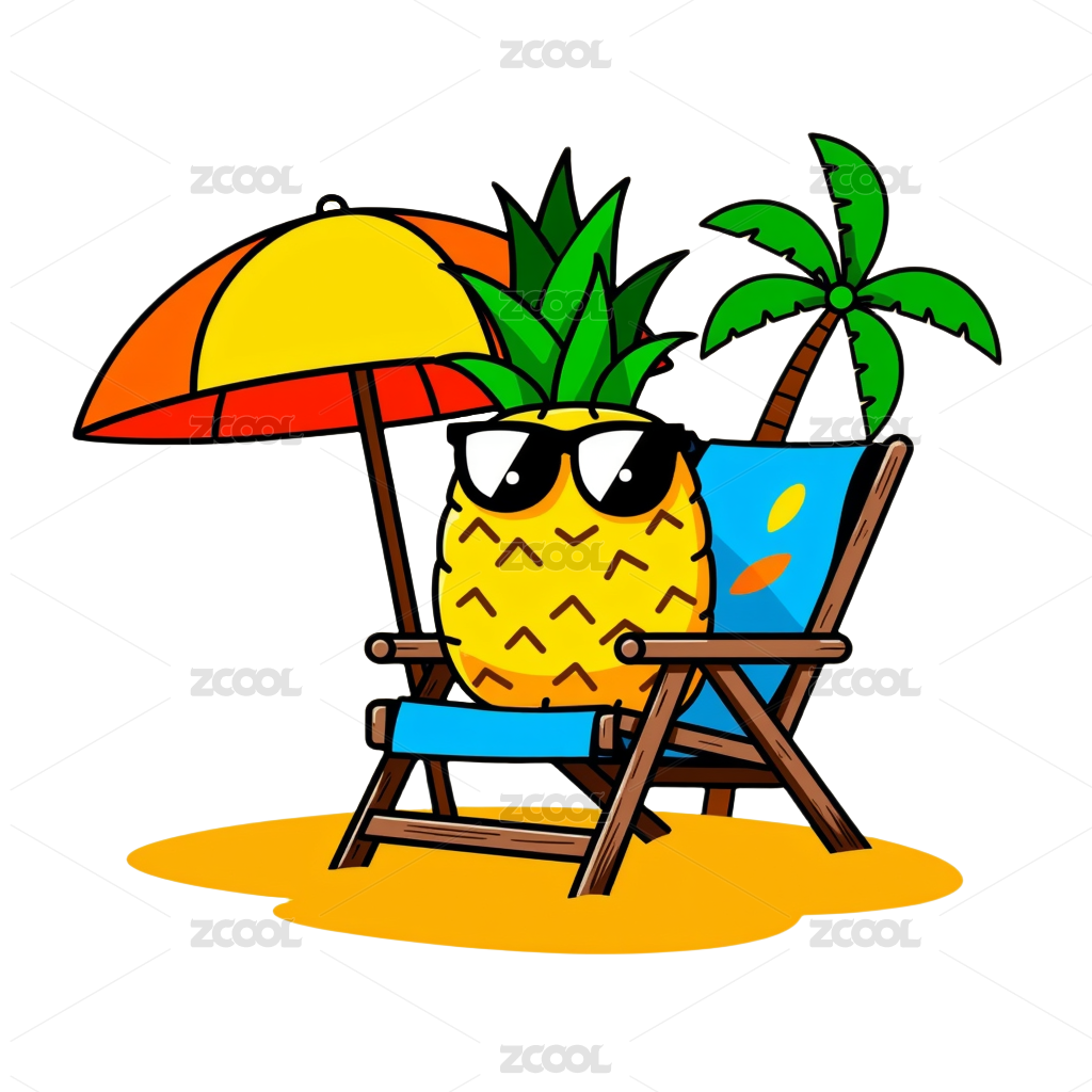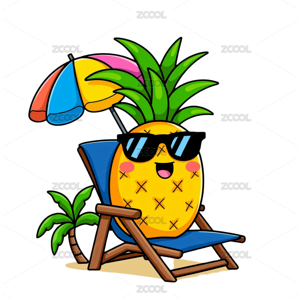 卡通菠萝戴着太阳镜伞上拿着贴纸高清图片