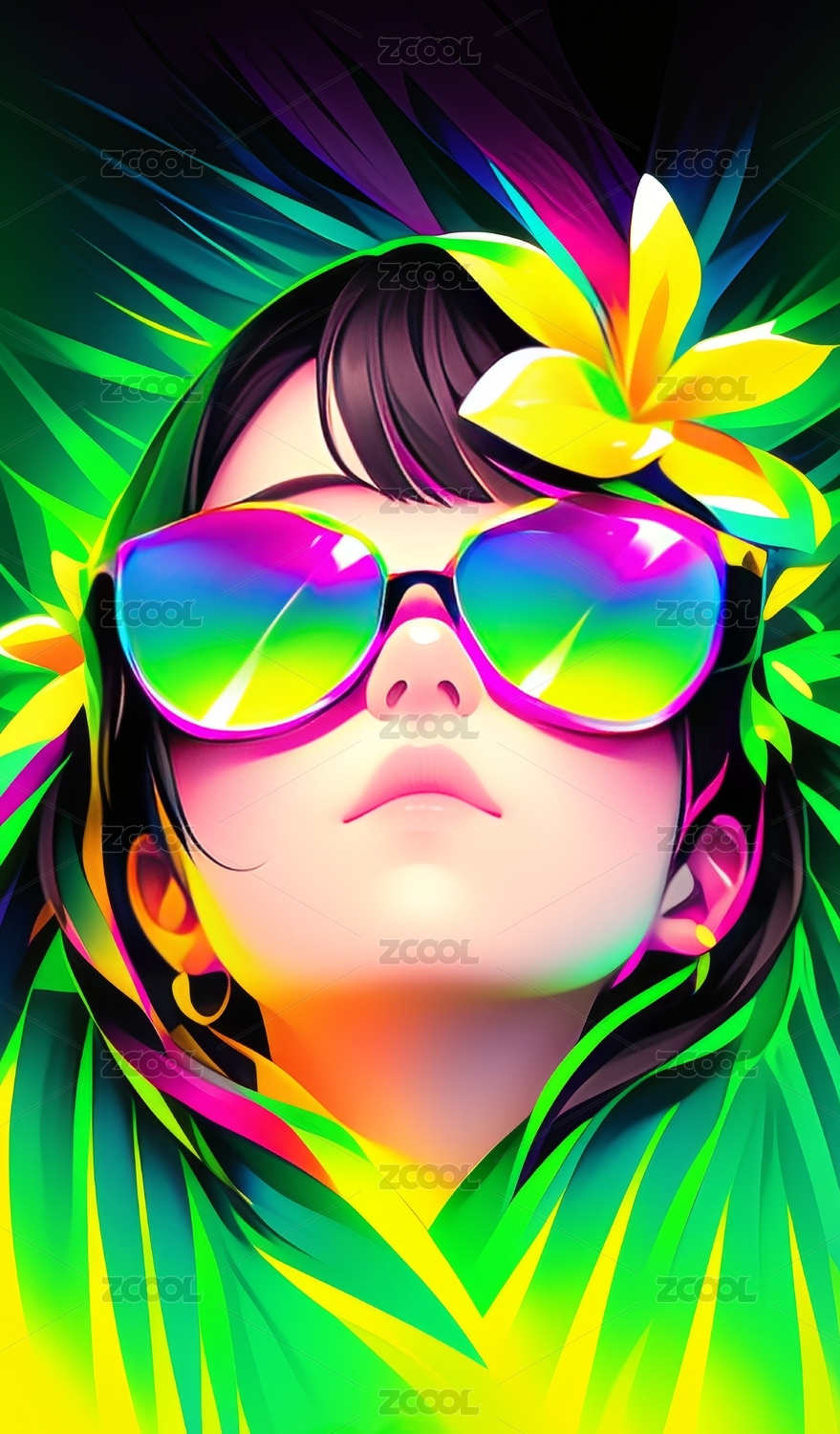 插画,凤梨,菠萝,女孩,手绘,水果,女人,人物,拟人,卡通